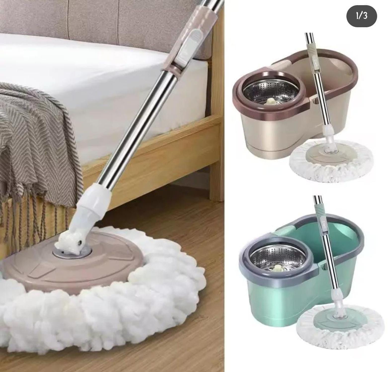 Make cleaning easier and more efficient with this high-quality metallic magic spin mop, designed for deep cleaning without the hassle. Featuring a sturdy stainless steel handle and a 360-degree rotating mop head, it effortlessly reaches into tight corners, under furniture, and along edges. The advanced spin system allows for hands-free wringing, keeping your hands clean and dry while controlling moisture levels for different floor types. Ideal for hardwood, tile, laminate, and more, this mop provides a streak-free shine with minimal effort. Built for durability and convenience, it's the perfect cleaning companion for a spotless home.