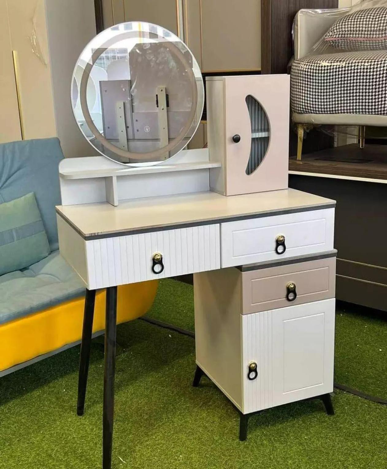 Our minimalist dressing table with a sliding mirror is designed for both beauty and functionality, offering a chic solution for modern spaces. The smooth-sliding mirror conceals spacious compartments that keep your essentials organized and your surfaces clear. Crafted from high-quality materials, this dressing table boasts clean lines and a streamlined silhouette, making it a versatile addition to any bedroom or dressing area. Perfect for those who appreciate understated elegance, this piece effortlessly blends form and function, providing a stylish space for your daily routine while enhancing your décor with its minimalist charm.