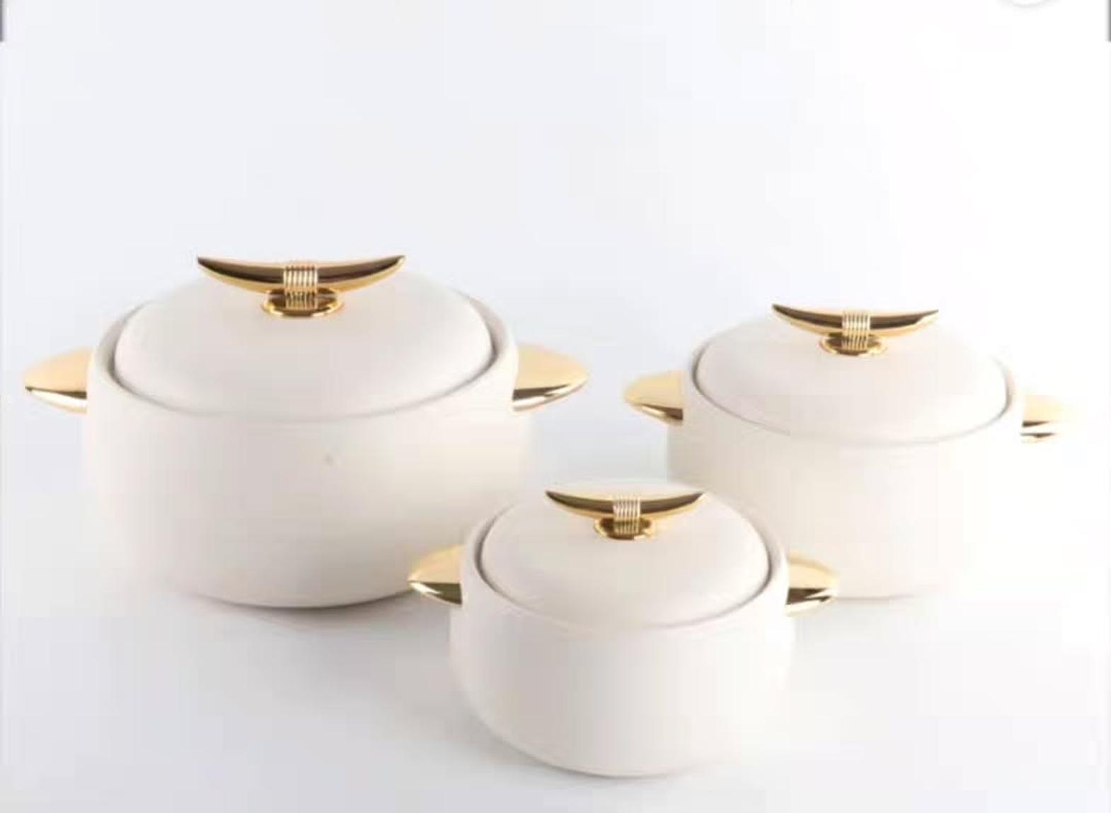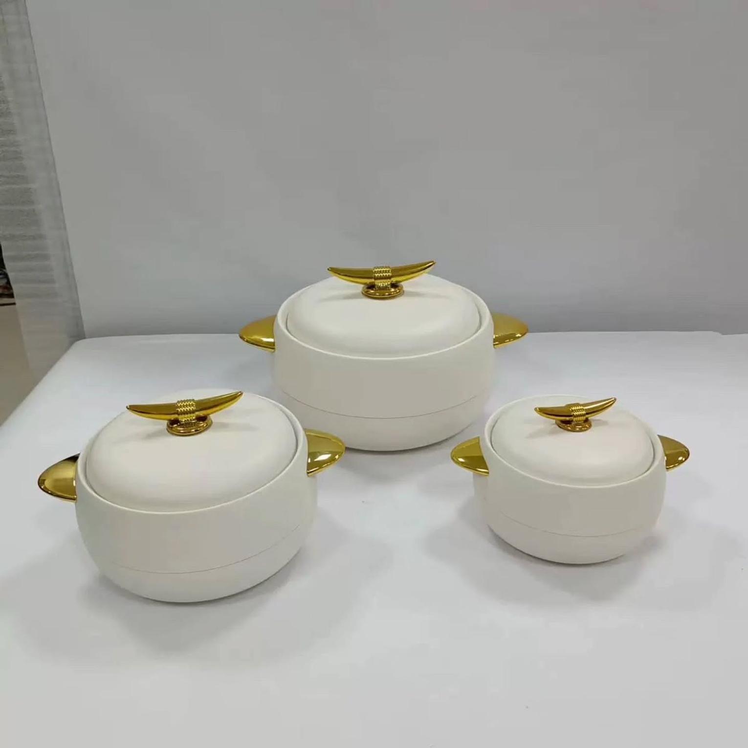 Add elegance and practicality to your dining experience with this Modern European style insulated hotpot set, featuring capacities of 3.5L, 2.0L, and 1.0L. Made from eco-friendly, high-quality PP material, these hotpots ensure durability, safety, and long-lasting heat retention to keep meals fresh and delicious for hours. The sleek glossy finish enhances their premium appeal, making them ideal for both family dining and professional restaurant settings. Combining style, functionality, and convenience, this insulated hotpot set is the perfect choice for serving and storing a variety of hot dishes in a luxurious way.