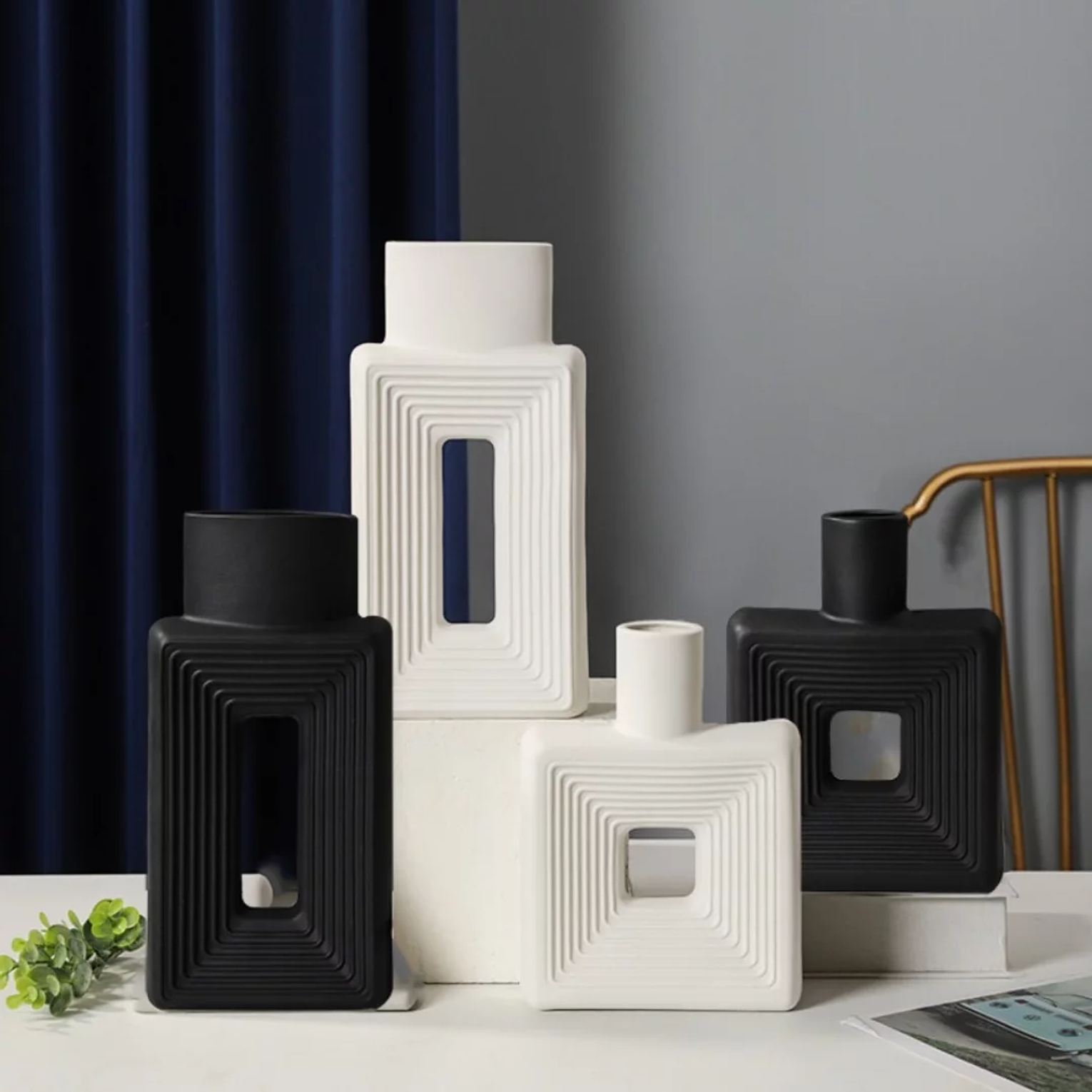 This contemporary Resin Square Decorative Vase Set consists of two complementary pieces, offering a stylish and versatile solution for interior design needs. Crafted from durable, lightweight resin, the vases feature a distinct geometric square shape that provides a modern, structured look for shelves, mantels, or side tables. They are available in timeless, high-contrast color options: deep Black and clean White, ensuring they seamlessly integrate into various color schemes and décor styles. These decorative vessels are ideal for displaying fresh flowers (with a liner), dried botanicals, or simply as architectural statement pieces, adding a touch of sophisticated flair to living spaces across the region.