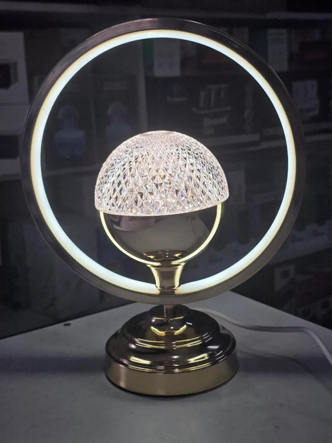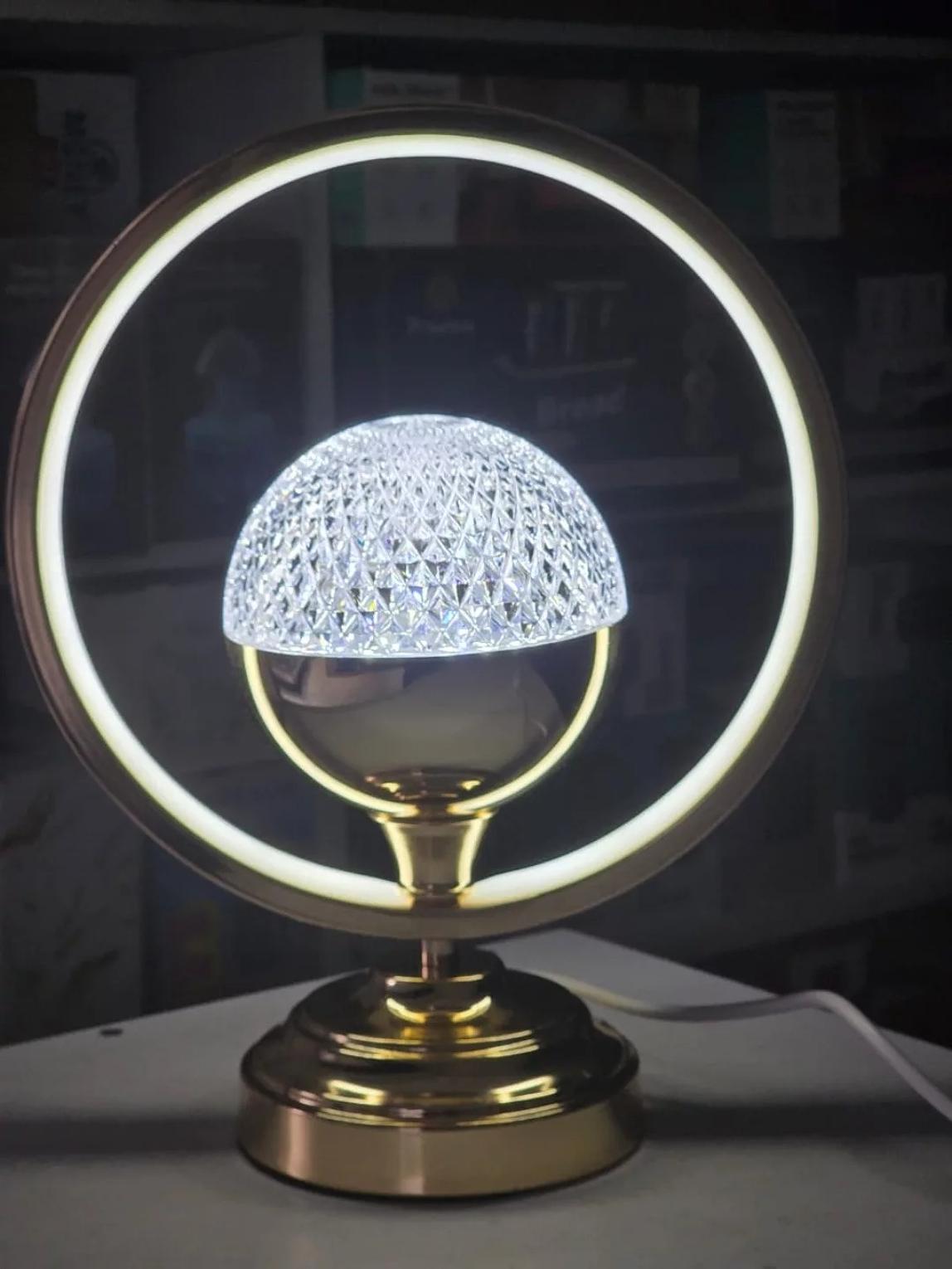 Elevate the ambiance of any room with the Aura Glow Modern Orb Table Lamp, a striking piece that embodies contemporary luxury and minimalist design. This elegant lamp features a captivating round golden frame that encircles a central frosted glass sphere, housing energy-efficient LED lighting. The design creates a soft, diffused glow that adds a warm and inviting atmosphere without harsh glare. Crafted from high-quality materials, its sleek golden finish provides a touch of opulence, making it a sophisticated addition to a study desk, living room side table, or bedroom nightstand. The clean lines and harmonious circular form reflect a modern aesthetic, while the subtle radiance enhances both functionality and decor. This lamp is not just a source of light; it's a statement piece that blends seamlessly into various interior styles, from modern minimalist to art deco-inspired spaces. This decorative lamp is a must-have for those seeking luxury table lamps, modern desk lights, gold accent lighting, round LED lamps, and minimalist home illumination.