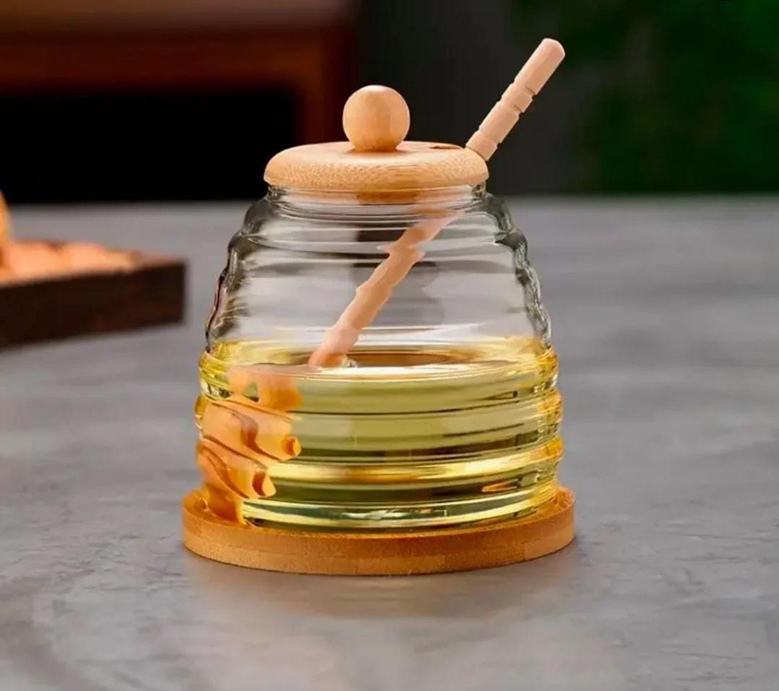 Store and serve your honey with elegance using these multi-purpose glass honey storage jars, featuring a sleek, transparent design that showcases the natural golden hue of your honey. The wooden lid ensures an airtight seal, keeping the honey fresh and free from moisture or contaminants. Included with each jar is a stirring stick, allowing for easy, mess-free drizzling without the need for additional utensils. Ideal for use at home or as a thoughtful gift, these jars not only help keep your honey in pristine condition but also add a rustic charm to your kitchen or dining table. Their versatile design makes them perfect for storing other liquids like syrup or jam, making them a practical and stylish addition to your kitchen essentials.