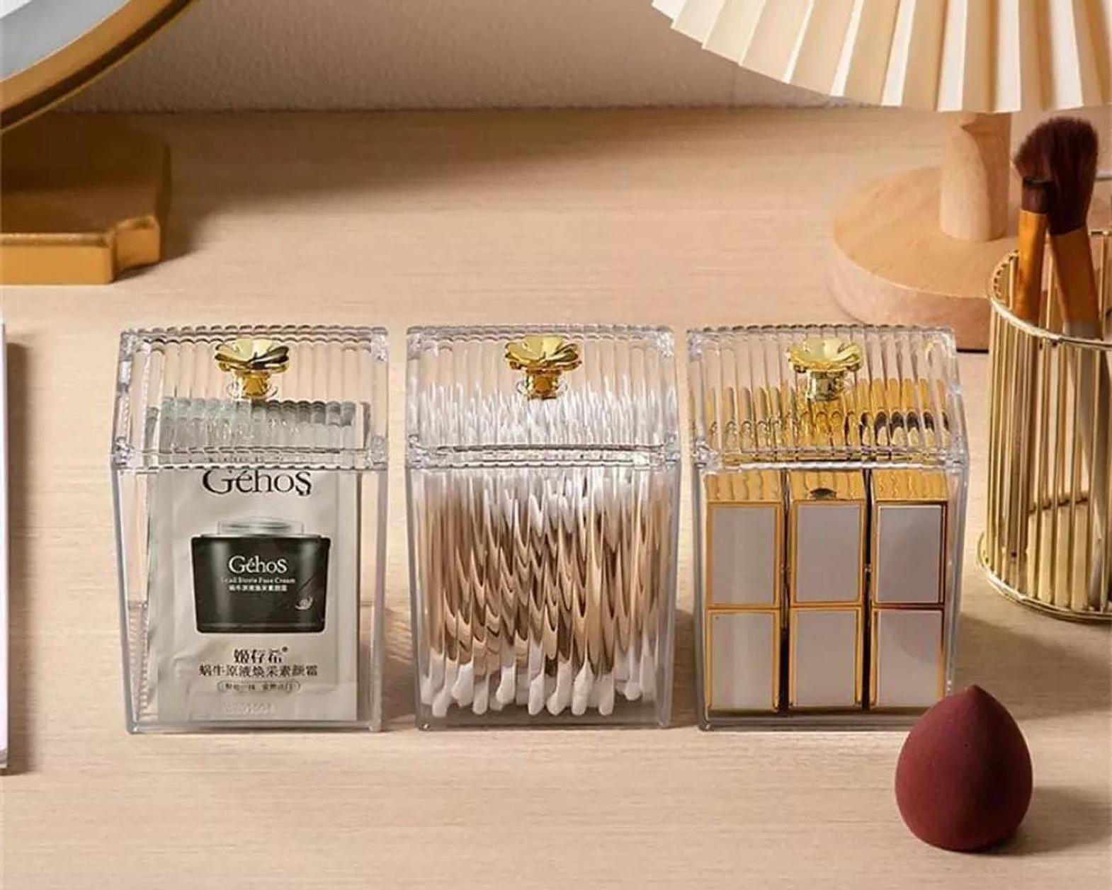 With its sleek design, the storage box not only keeps your beauty essentials neatly arranged but also enhances your decor. The clear lid allows for easy visibility of contents, ensuring you can quickly find what you need without rummaging through clutter. The spacious compartments are perfect for organizing various items, from cotton pads and swabs to your favorite lipsticks and small accessories.