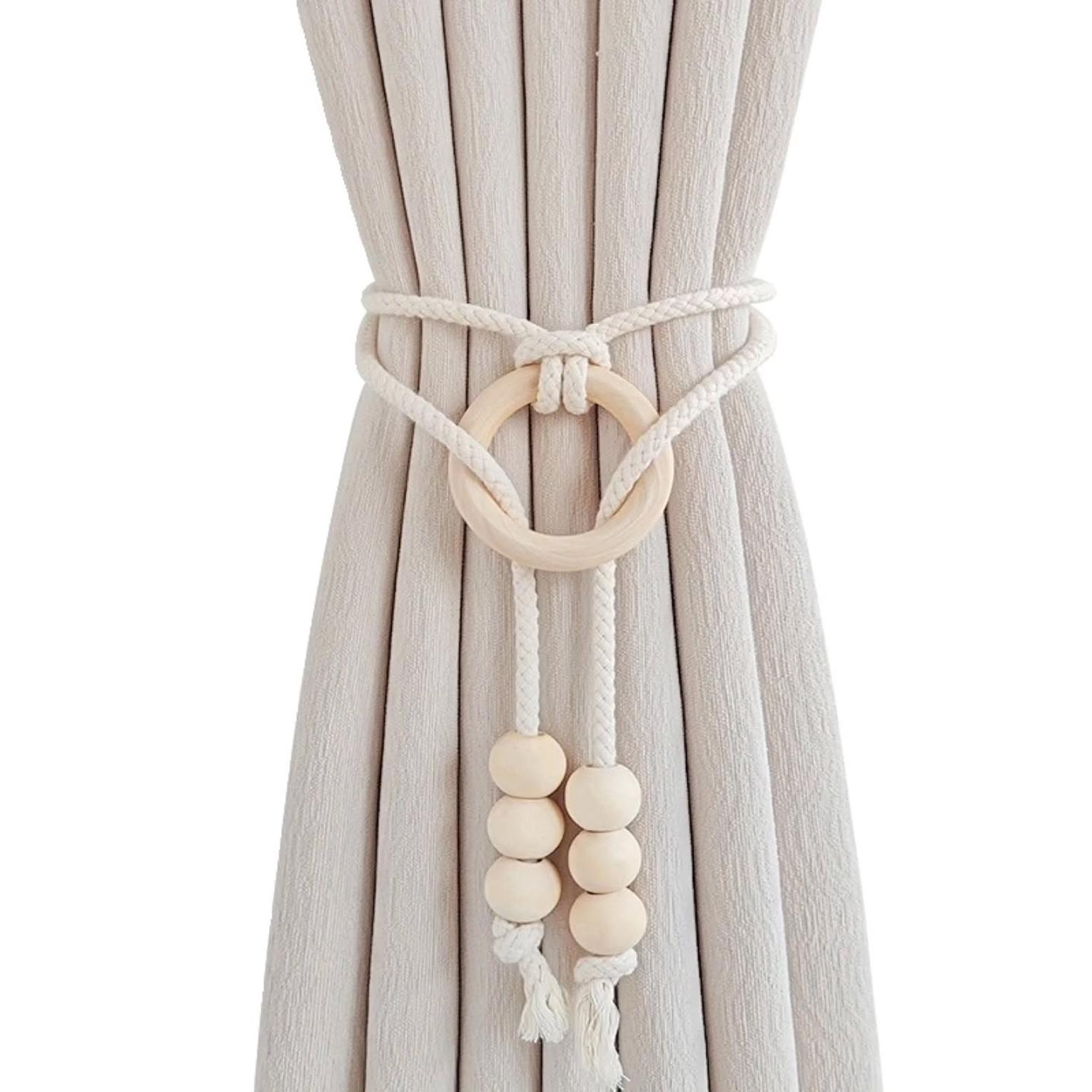 Enhance your window décor with this 2-piece set of natural cotton rope curtain tiebacks, designed in a charming boho style for a warm and inviting look. Each tieback features durable cotton rope paired with smooth wooden rings, combining functionality with decorative appeal. Ideal for holding back curtains neatly while adding texture and style, these versatile tiebacks are suitable for living rooms, bedrooms, offices, or studios. Easy to use and beautifully crafted, they are the perfect finishing touch to complete both modern and rustic interiors.
