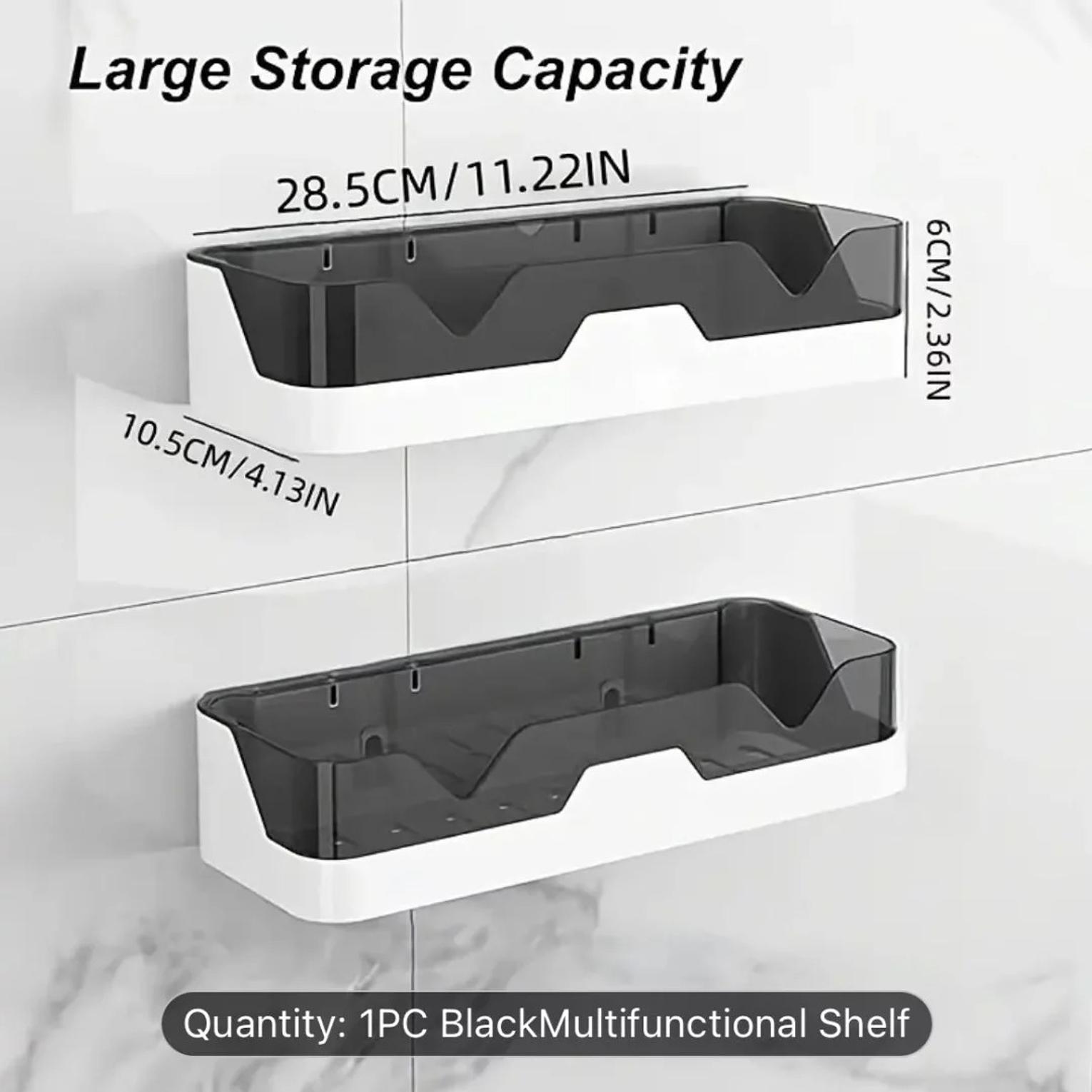 The standout feature is its no-drill installation. Forget about damaging your tiles or walls; this shelf comes with a powerful self-adhesive backing (indicated by the installation visual), ensuring a firm and reliable attachment without the need for tools. It's perfectly suited for holding a variety of toiletries, including shampoo, conditioner, body wash bottles, soaps, brushes, and more, keeping them neatly organized and easily accessible within your shower or next to your sink. Made from durable materials (likely high-grade plastic, as seen), it's built to withstand the humid bathroom environment. Enjoy a tidier, more functional, and aesthetically pleasing bathroom with this essential and easy-to-install storage solution.