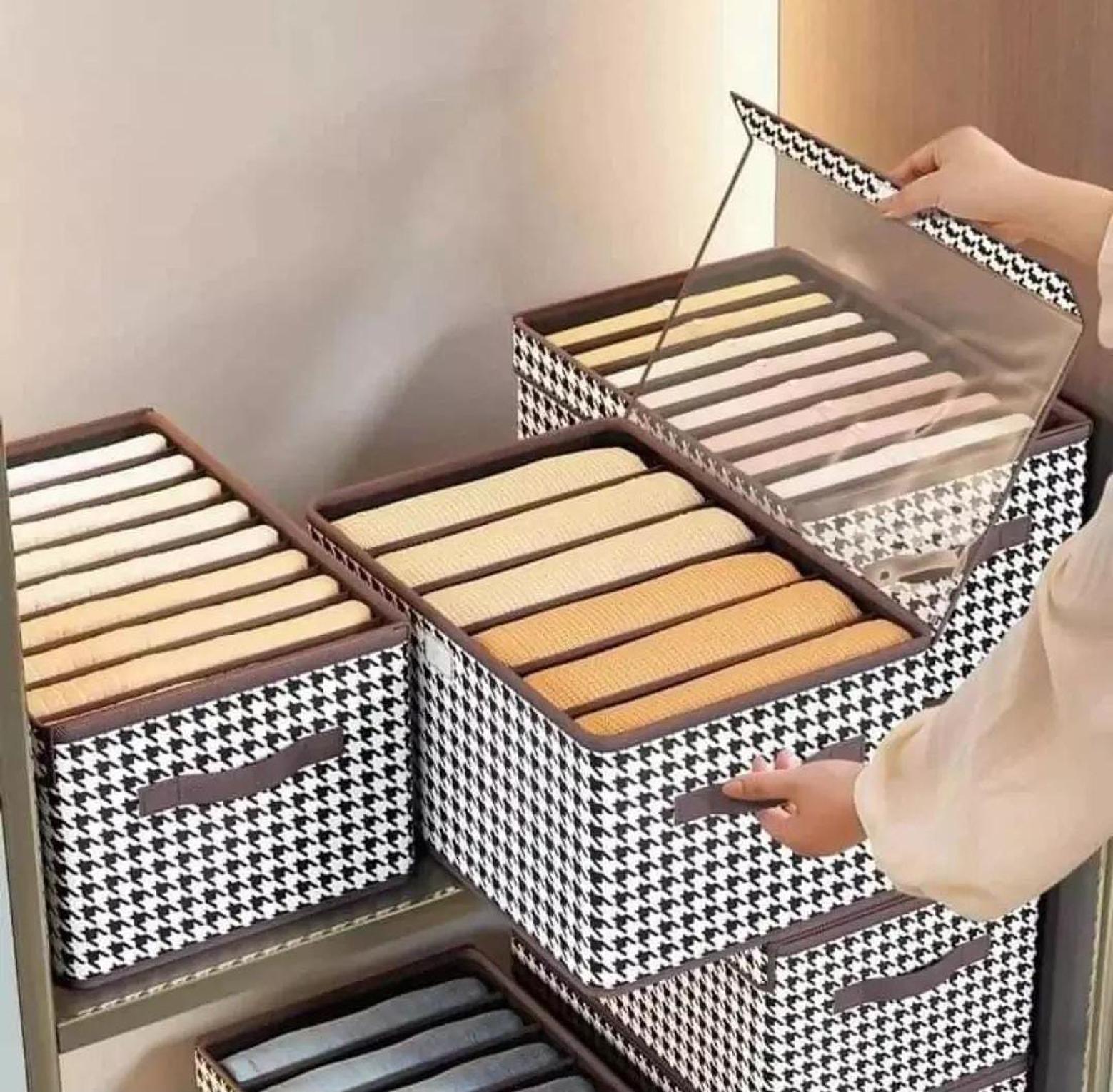 Streamline your wardrobe with our non-woven 7-grid clothes organizer, a versatile and efficient storage solution perfect for organizing jeans, trousers, and other folded clothes. Crafted from durable, breathable non-woven fabric, this organizer ensures air circulation, keeping your clothes fresh and wrinkle-free. Each of the seven compartments provides ample space, allowing you to separate items for easy access and tidiness.