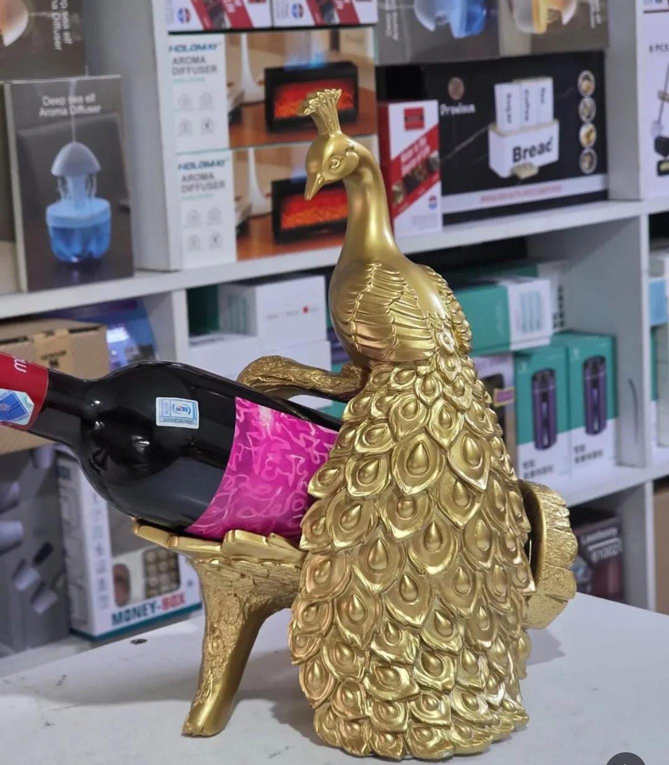 The Peacock Luxury Wine Rack is a statement piece that fuses artistry with functionality, bringing a touch of opulence to your wine display. Expertly crafted with intricate detailing, the design captures the graceful beauty of a peacock, its flowing feathers forming the perfect cradle for your favorite bottle. Made from high-quality, durable materials with a refined finish, it’s ideal for showcasing wine at home, in upscale bars, or as a unique gift for wine enthusiasts. This decorative yet practical rack not only secures your bottle but also serves as an eye-catching centerpiece, embodying sophistication and style in every curve.