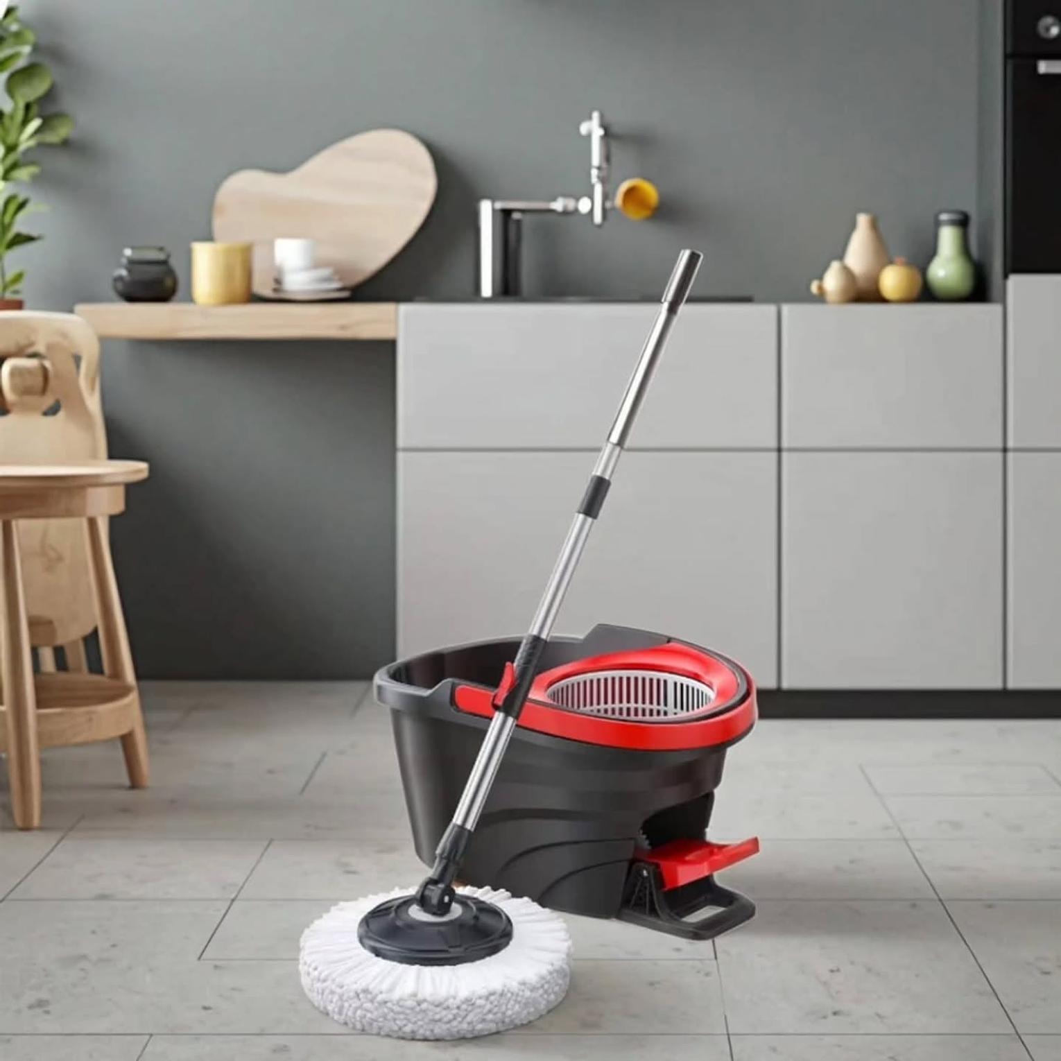 The Pedal Spin Mop & Bucket Set is an innovative cleaning solution designed to make floor care faster, easier, and more hygienic. Featuring a foot pedal wringer, it allows hands-free dehydration of the mop, keeping your hands dry and your cleaning routine effortless. The 360° rotating microfiber mop head effortlessly reaches corners, edges, and under furniture for a streak-free finish on any surface. Its highly absorbent microfiber technology traps dust, dirt, and spills with ease, while the sturdy yet lightweight bucket comes with a built-in splash guard to minimize mess. Perfect for all floor types including tile, wood, marble, laminate, and vinyl, this spin mop set ensures sparkling clean results every time.