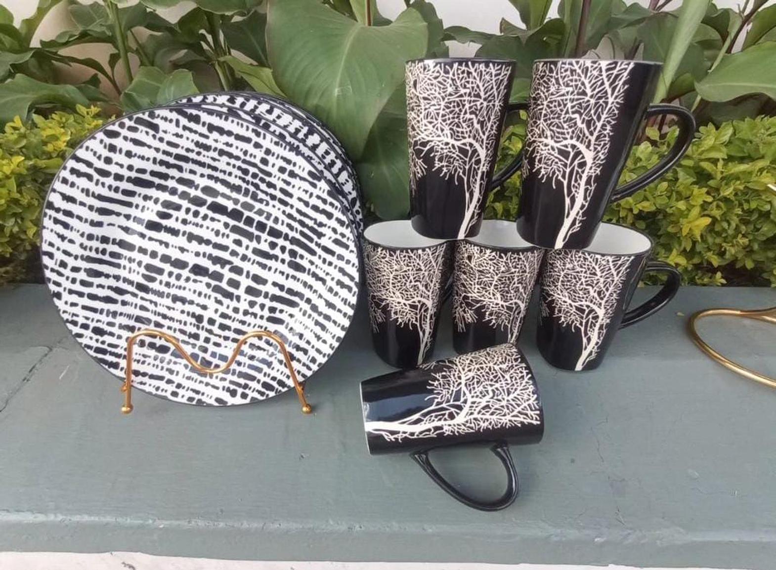 This plates and cups set offers a perfect blend of form and function, ideal for both everyday meals and special occasions. Crafted from high-quality materials, each piece in the set is designed for durability and style, ensuring that your dining table looks sophisticated while offering practical use. The set includes a variety of plates and matching cups, perfect for serving appetizers, main courses, and beverages. With a modern, minimalist design, it complements any decor and is versatile enough for casual meals or formal dining events, providing a refined touch to every occasion.