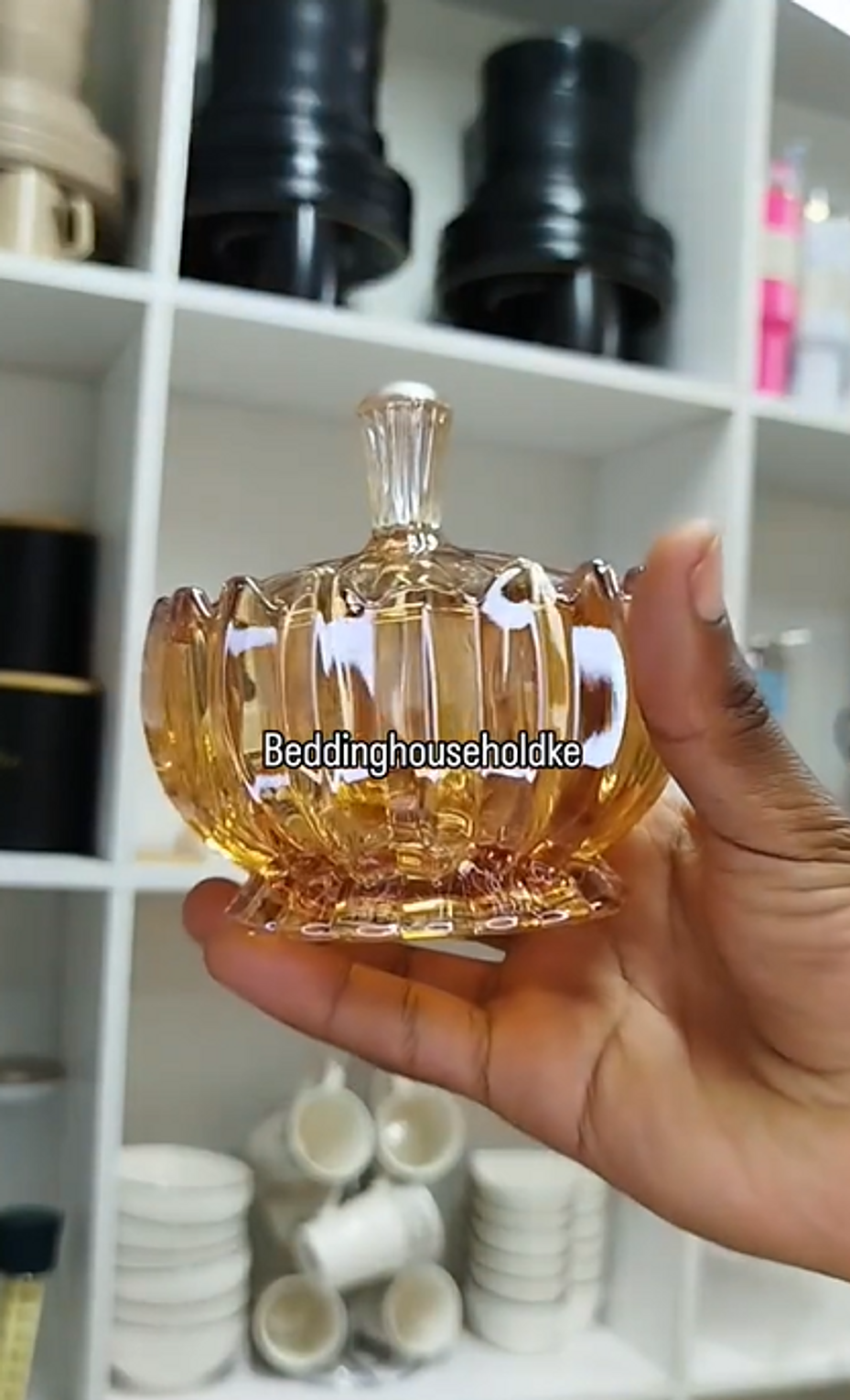 Complete with a matching glass lid, this sugar bowl is perfect for elegantly serving and storing sugar cubes, loose sugar, or various sweets and candies. Beyond its primary use, it also serves as a charming decorative piece for holding small trinkets, jewelry, or even as a mini candle holder, showcasing its versatility. Whether for daily use or special occasions, this sugar dish brings a touch of refined elegance and practical beauty to your kitchen, dining table, or vanity.