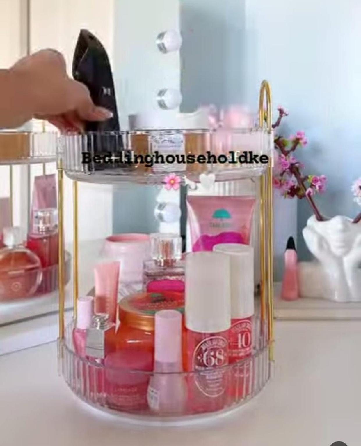 Keep your cosmetics neatly arranged and within reach with this stylish rotating makeup stand, perfect for decluttering your vanity or dressing table. Featuring a smooth 360-degree rotation, it allows easy access to skincare products, brushes, perfumes, and makeup essentials without the hassle of searching. With multiple adjustable compartments, this stand provides ample storage while maintaining a sleek and modern design. Made from durable, easy-to-clean materials, it’s a must-have for beauty lovers who want both organization and elegance in their daily routine.