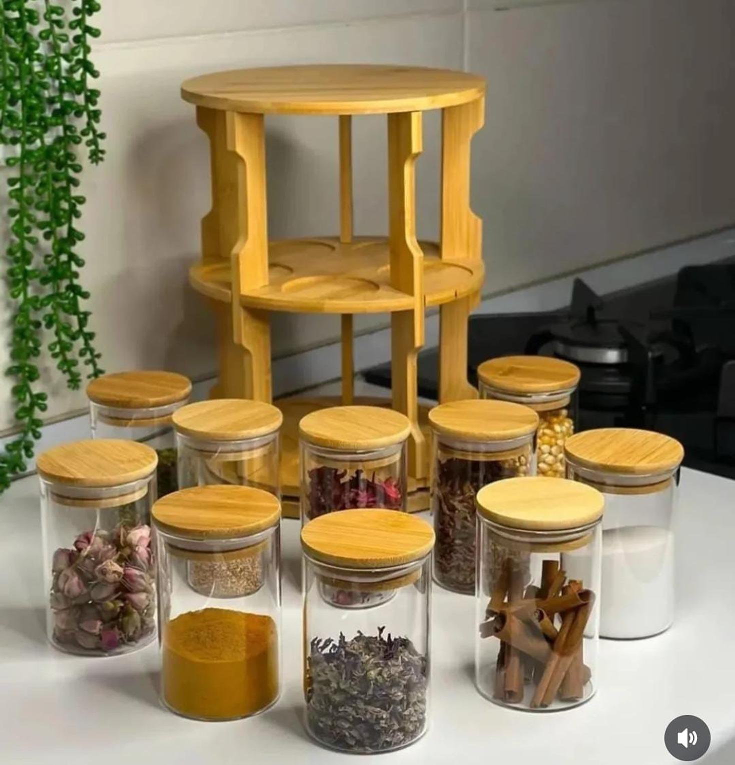 The Rotating Spice Bamboo Tabletop Rack with 10pcs Jars is a perfect blend of natural elegance and everyday functionality. Crafted from eco-friendly bamboo, this space-saving rack spins smoothly for easy access to your favorite spices, keeping your kitchen neat and your seasonings within arm’s reach. The set includes 10 clear jars, each with a secure lid to preserve freshness and aroma, making it easy to identify and dispense your spices. Its sturdy build and timeless design suit both modern and rustic kitchens, while the compact footprint makes it ideal for countertops or small spaces. A must-have for anyone who values convenience, style, and well-organized cooking.