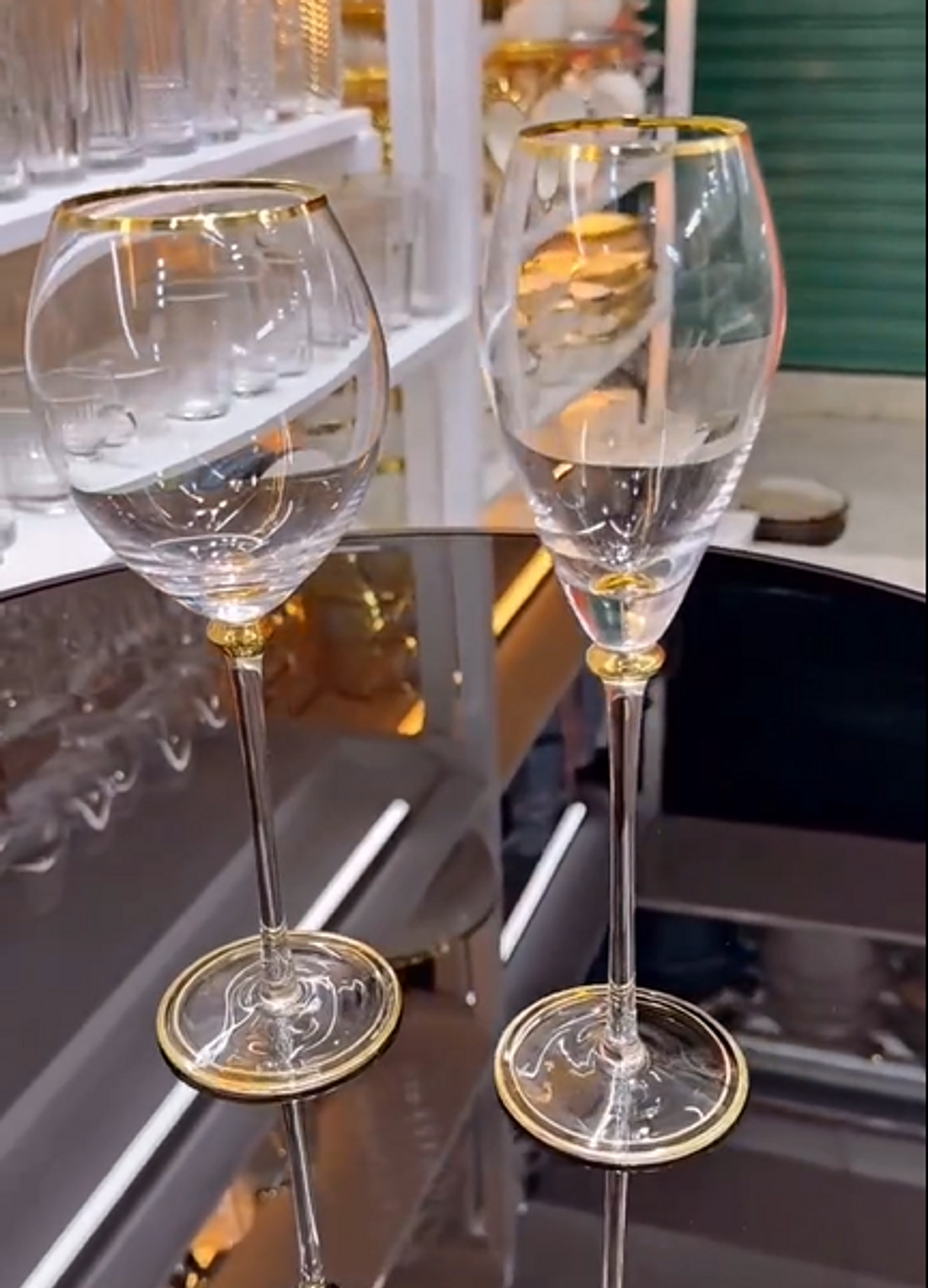 Adorn your table with the unparalleled elegance of the Regal Rimmed Crystal Goblets, designed to infuse every occasion with a sense of luxury and grandeur. Crafted from premium quality crystal, these goblets offer exceptional clarity and a dazzling sparkle, allowing the true color and character of your beverages to shine through. The standout feature is the exquisite gold rim, meticulously applied to the lip of each glass, which provides a lavish touch and a refined drinking experience. Further enhancing their royal appeal, the goblets also feature subtle yet striking gold accents on the stem and base, creating a cohesive and opulent design. The generous bowl shape is versatile, making these goblets ideal for serving wine, water, cocktails, or even elegant desserts. Their substantial feel and durable construction ensure they are not only beautiful but also suitable for regular use or special celebrations. Whether you're hosting a formal dinner party, enjoying a quiet evening, or simply seeking to add a touch of sophistication to your drinkware collection, the Regal Rimmed Crystal Goblets are an impeccable choice for those who appreciate fine craftsmanship and timeless style.
