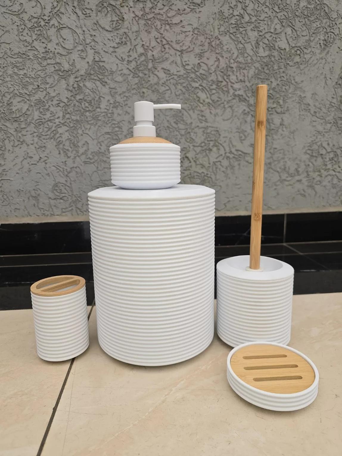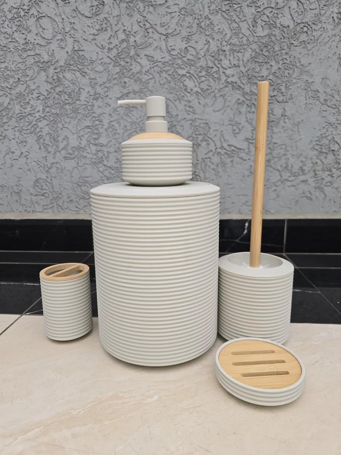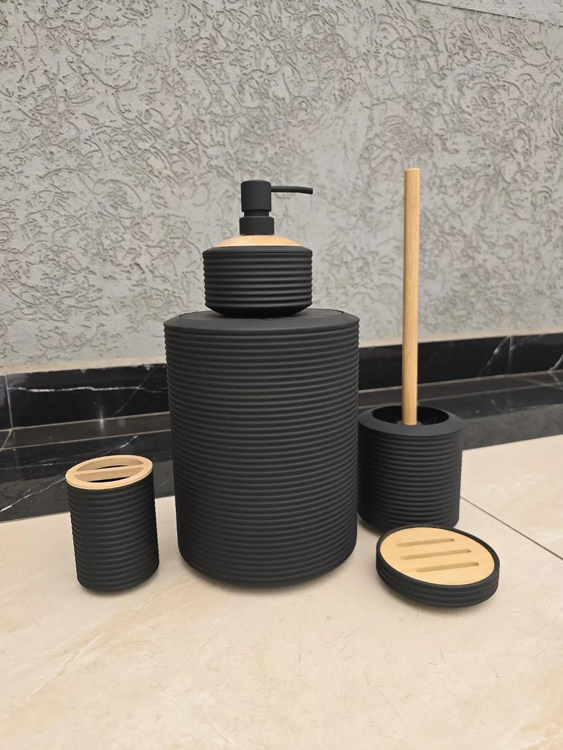 Transform your bathroom into a sanctuary of style and organization with the Zenith Bath Elegance 6-Piece Accessory Set. This meticulously curated collection provides every essential item to outfit your washroom with both functionality and refined aesthetics. The set includes a toothbrush holder cup, a liquid soap dispenser, a soap dish, a trash can, a tumbler, and a toilet brush with its holder, ensuring a cohesive and clutter-free space. Each piece is crafted from very high-quality, environmentally friendly PP material, offering exceptional durability, resistance to moisture, and easy cleaning. The elegant design features a contemporary ribbed texture and complementary wooden accents on the soap dish and brush handles, adding a touch of natural warmth to the modern silhouette. Available in a sophisticated palette of black, white, beige, and grey, you can select the perfect color to seamlessly match or enhance your existing bathroom decor. This set is designed not only to organize your daily essentials but also to elevate the overall ambiance of your space, making it feel more luxurious and orderly. This comprehensive accessory set is a must-have for those seeking luxury bathroom accessories, modern bathroom sets, eco-friendly bath decor, complete vanity sets, and stylish toilet brush holders.
