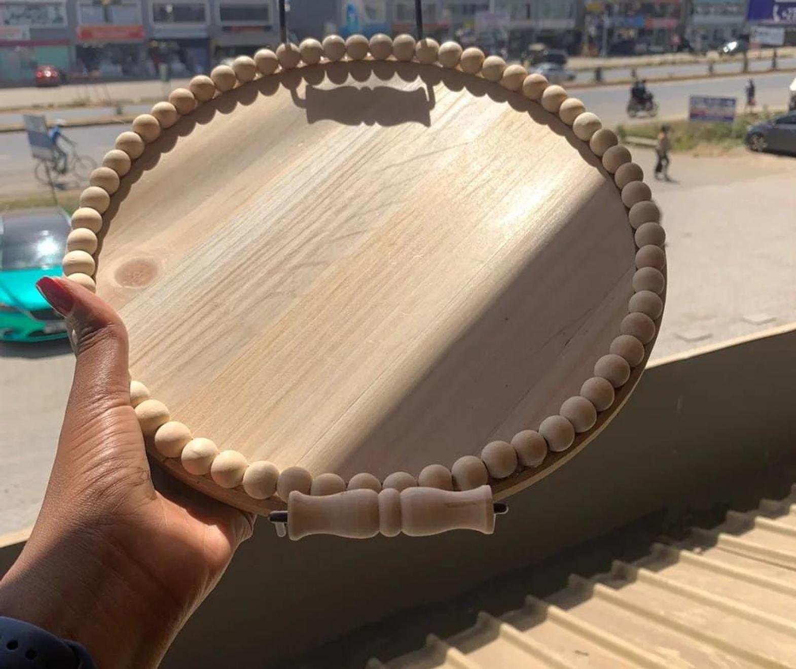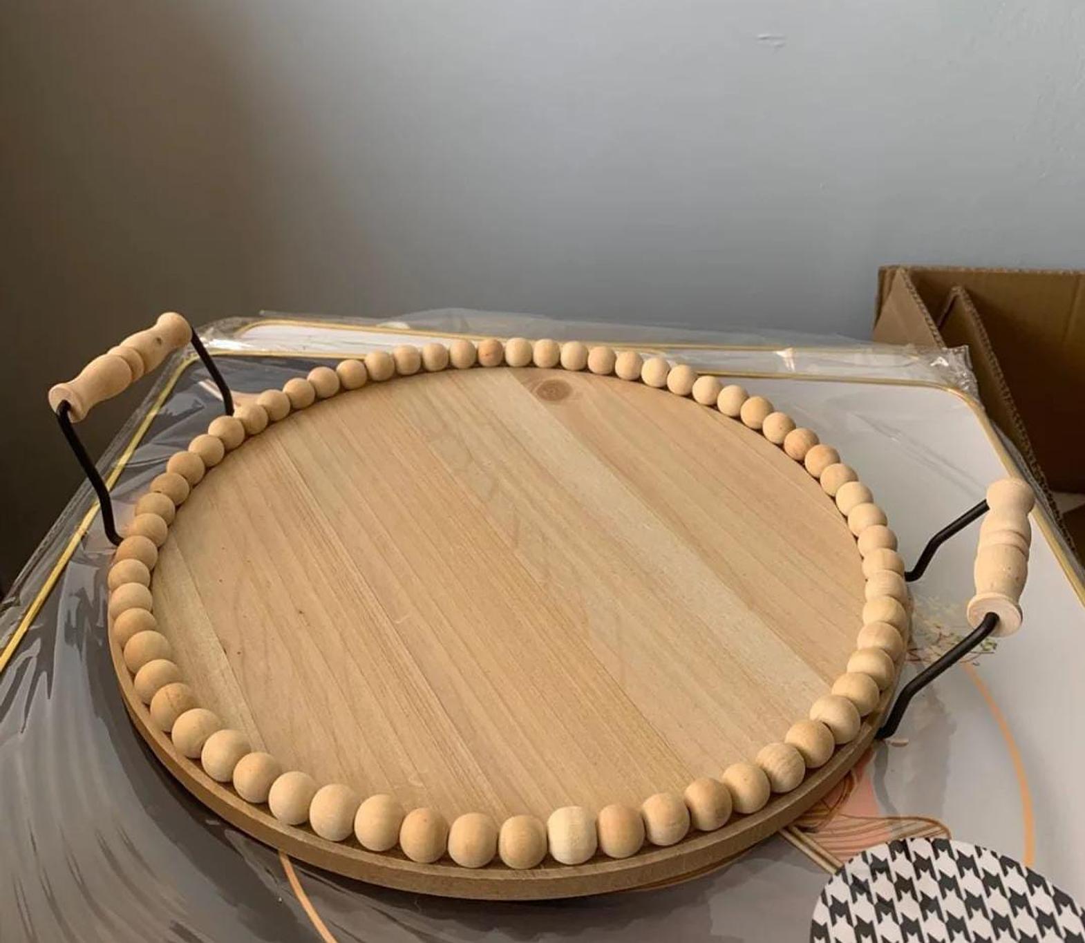 Infuse your space with rustic charm using this beautifully crafted wooden round beaded tray, designed for both functionality and aesthetics. Made from high-quality wood, its smooth, natural finish highlights the rich textures and grains, while the delicate beaded edge adds a touch of vintage elegance. Perfect for displaying candles, floral arrangements, or decorative accents, this versatile tray enhances coffee tables, dining spaces, and kitchen counters with effortless style. Whether used as a centerpiece or for organizing essentials, its timeless appeal makes it a must-have for farmhouse, bohemian, or modern rustic décor.