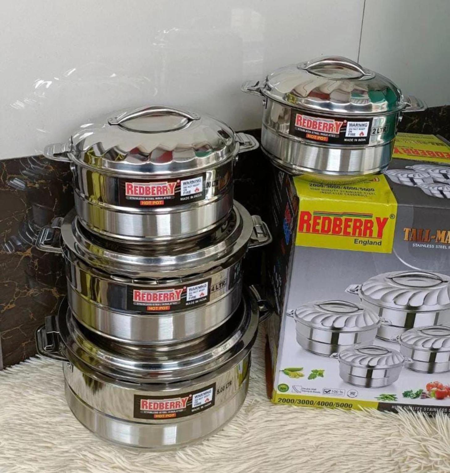 This set of 4 Redberry TallMax hotpots offers a perfect blend of functionality and style for your kitchen or dining table. Crafted for durability, each hotpot is designed with superior insulation to maintain your food’s temperature for longer, ensuring your meals stay warm and fresh when serving guests or during family meals. The tall, sleek design makes them ideal for a variety of dishes, from rice and curries to soups and stews, while their attractive finish adds a touch of sophistication to your dining experience. Easy to handle with ergonomic lids and handles, these hotpots are not only practical but also stylish enough to complement any dinner setting. Whether for daily use or special occasions, this set brings both convenience and elegance to your table.