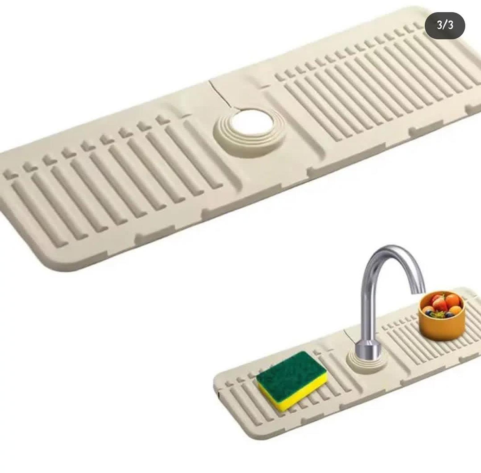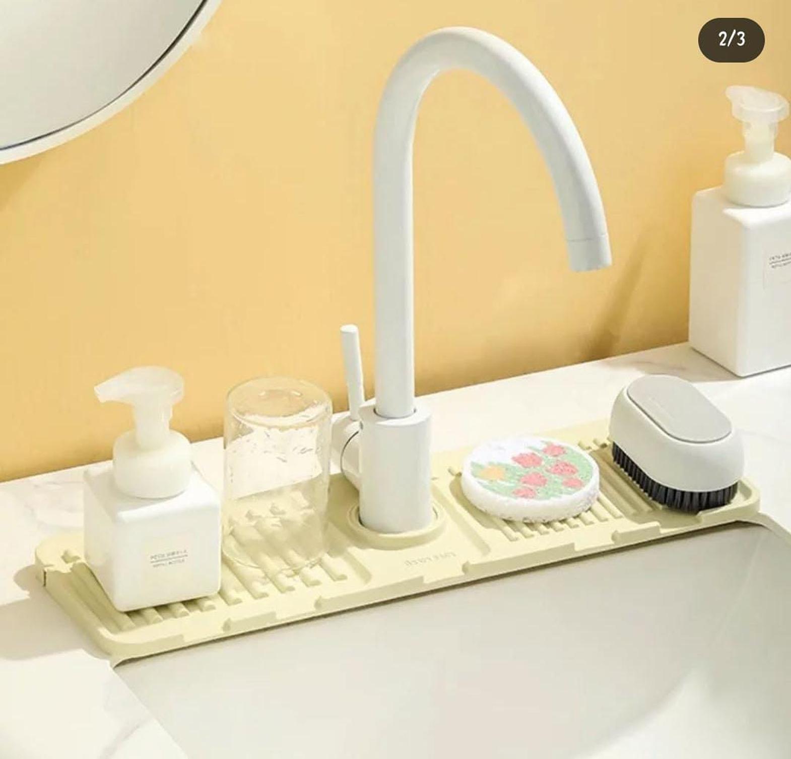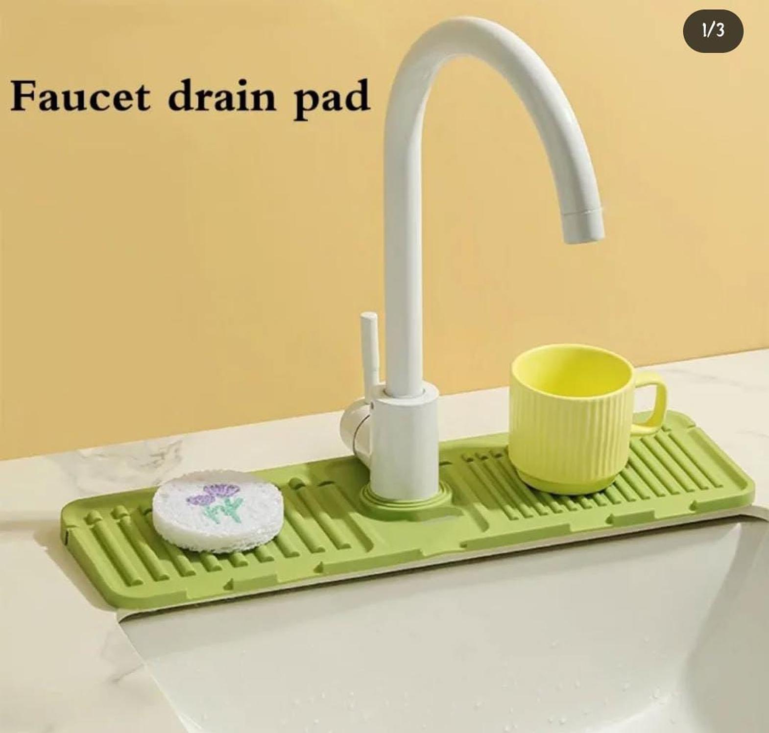 Keep your kitchen countertops dry and protected with this silicone faucet mat and sink splash guard, an essential accessory for managing water spills around your sink area. Made from flexible, non-slip silicone, it fits seamlessly under your faucet, collecting splashes and drips while ensuring water doesn’t pool on your countertop. The mat’s durable construction is heat-resistant and easy to clean, making it perfect for daily use. Its simple, modern design complements any kitchen décor, while the raised edges prevent water from escaping onto the surface. Ideal for busy kitchens, this drainage pad is a functional yet stylish solution for maintaining a tidy and dry workspace.