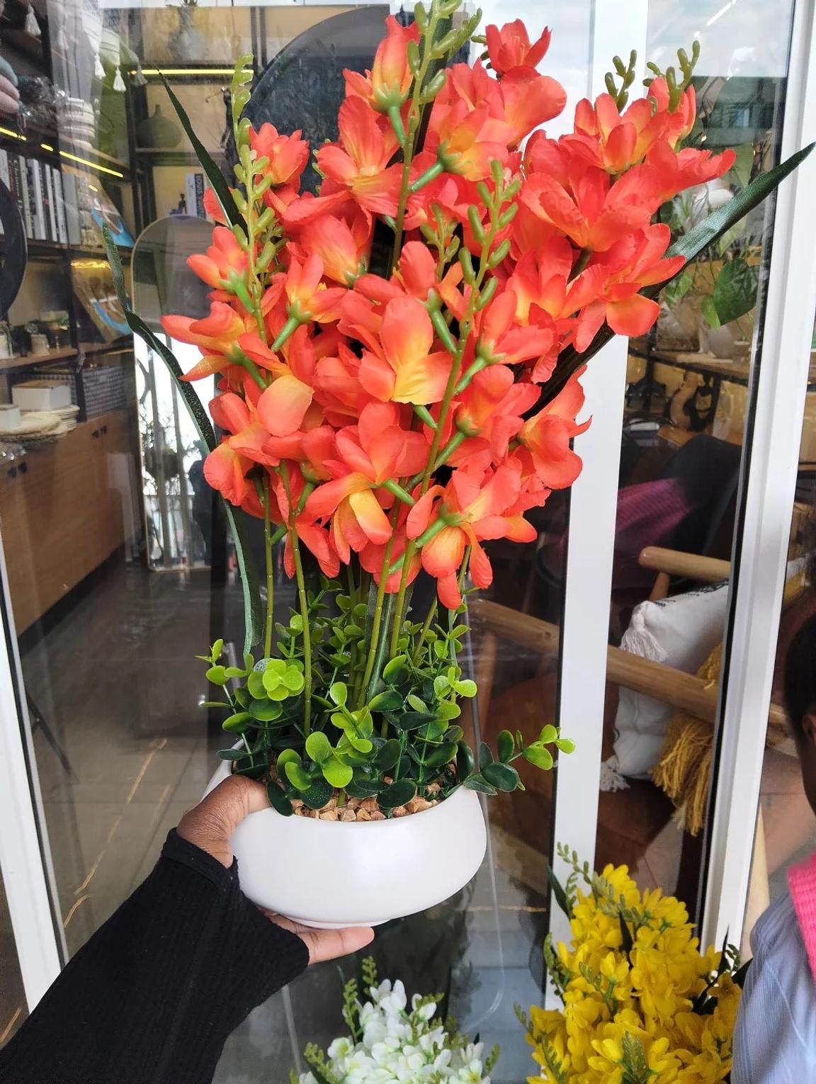 Add a refreshing burst of color to your home or workspace with these large tabletop potted flowers, designed to bring beauty and elegance to any setting. Available in three stunning shades: yellow, orange, and white, these realistic blooms are set in a stylish pot that complements both modern and classic interiors. Ideal for coffee tables, console displays, or office desks, they create a welcoming and uplifting atmosphere without the need for maintenance. Whether for personal use or as a thoughtful gift, these decorative flowers are a perfect choice to enhance your décor.