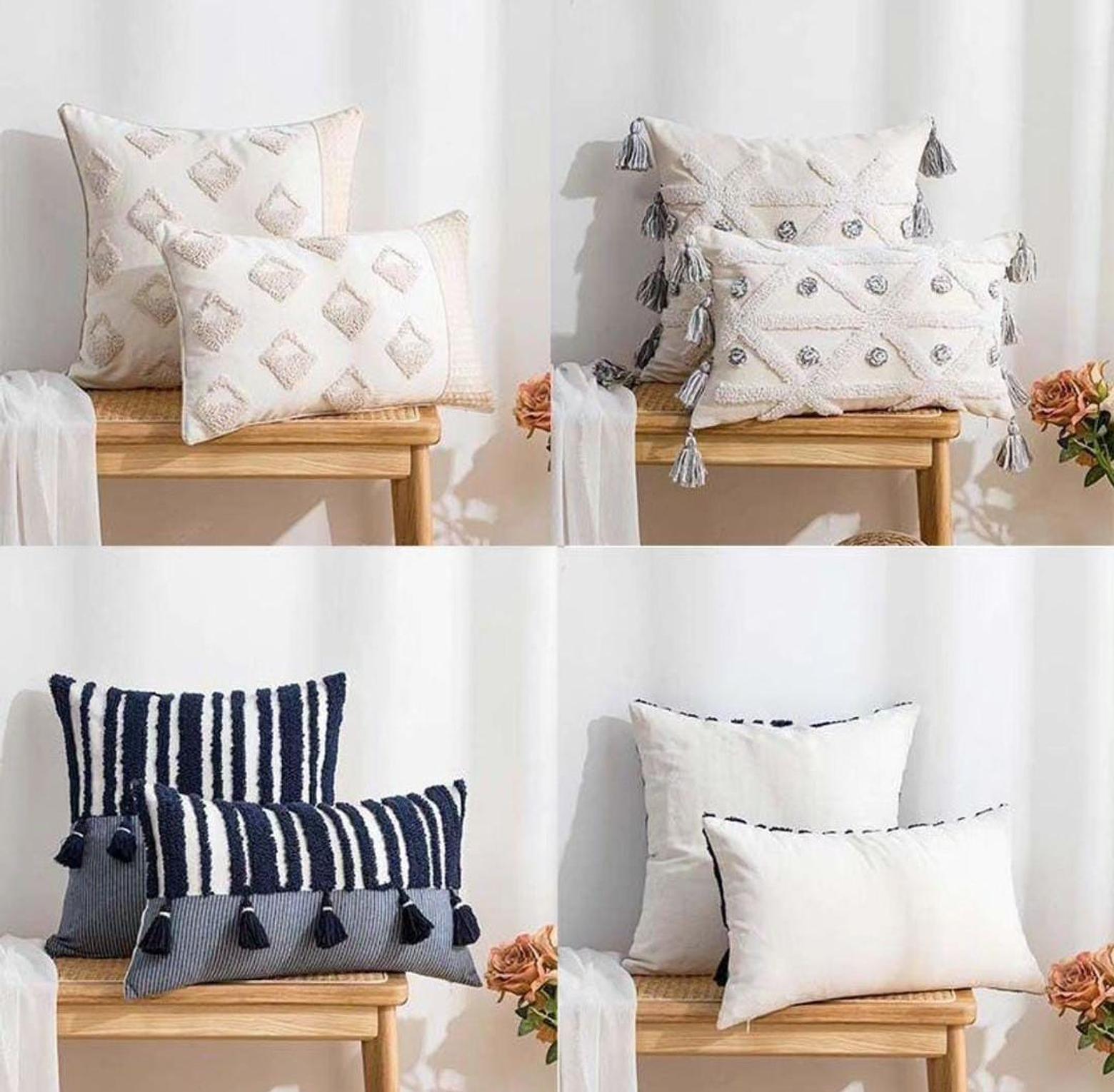 Elevate your living space with our tassels Moroccan-style lumbar pillow covers, designed to infuse your home with warmth and cultural flair. Crafted from high-quality fabric, these pillow covers feature intricate patterns and vibrant colors that capture the essence of Moroccan artistry. The playful tassels add a delightful texture, making these covers not only visually appealing but also invitingly cozy. Perfect for use on sofas, beds, or chairs, they provide excellent lumbar support while enhancing your decor with a touch of bohemian elegance. Whether you’re looking to create a serene oasis or a lively gathering space, these lumbar pillow covers serve as the perfect accent pieces. Easy to care for and versatile in style, they can seamlessly blend into any room, bringing a sense of adventure and creativity to your home. Transform your space with these stunning tassels Moroccan-style lumbar pillow covers, perfect for adding both comfort and character.