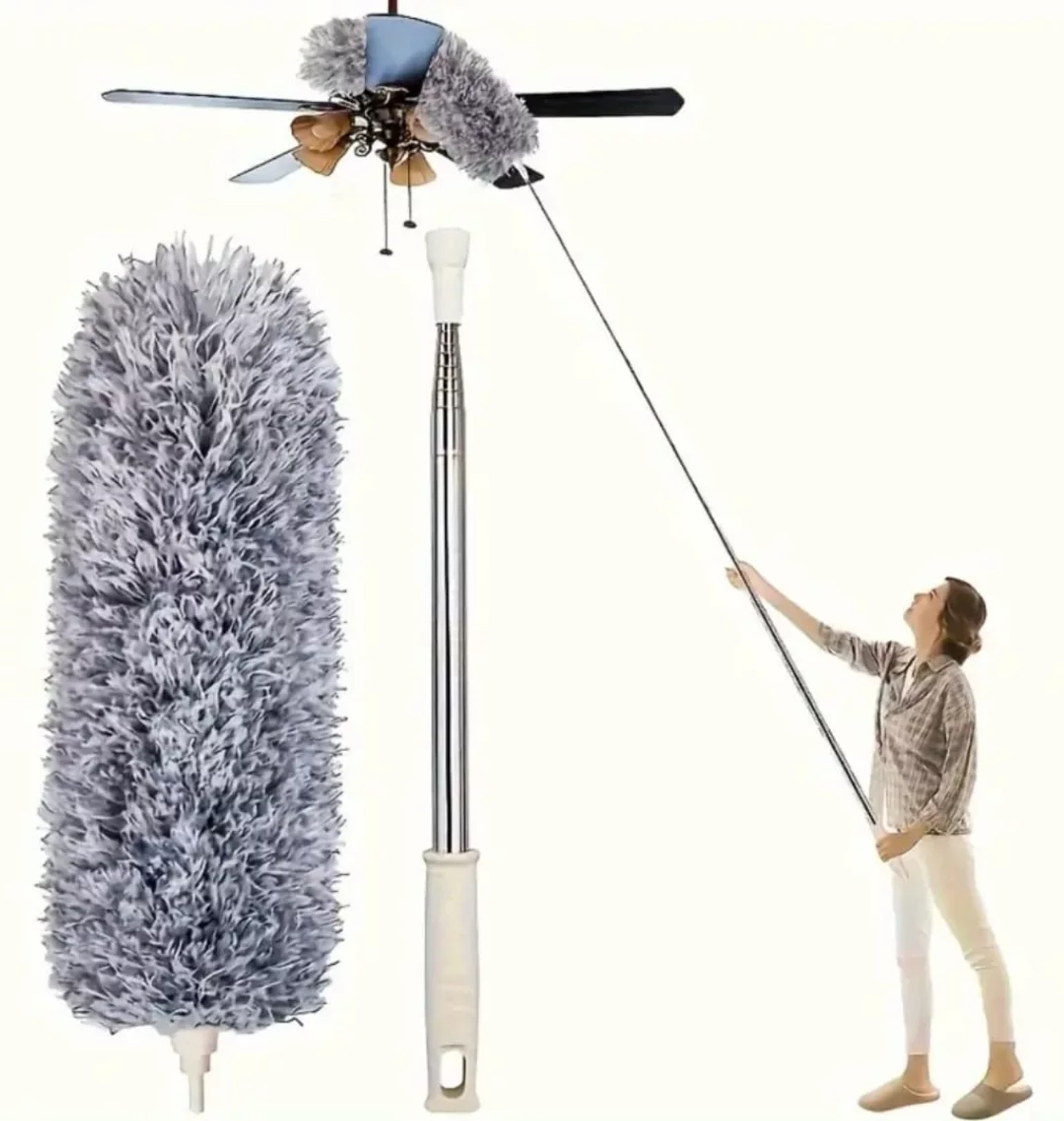 Revolutionize your cleaning routine with this versatile and incredibly long-reaching microfiber duster, engineered to simplify dusting hard-to-access areas. The durable telescopic handle effortlessly glides from a compact 40 inches to an impressive 280 cm, allowing you to easily clean ceiling fans, high roofs, cobwebs, and light fixtures while standing safely on the floor. Its key feature is the highly flexible, 360-degree bendable head, which conforms perfectly to irregular shapes like blinds and baseboards, ensuring dust is captured from every nook and cranny. The high-quality, scratch-resistant microfiber is lint-free and hypoallergenic, making it ideal for sensitive surfaces and allergy sufferers. This tool is fully reusable and washable, providing an economical and environmentally conscious way to maintain a dust-free home environment.