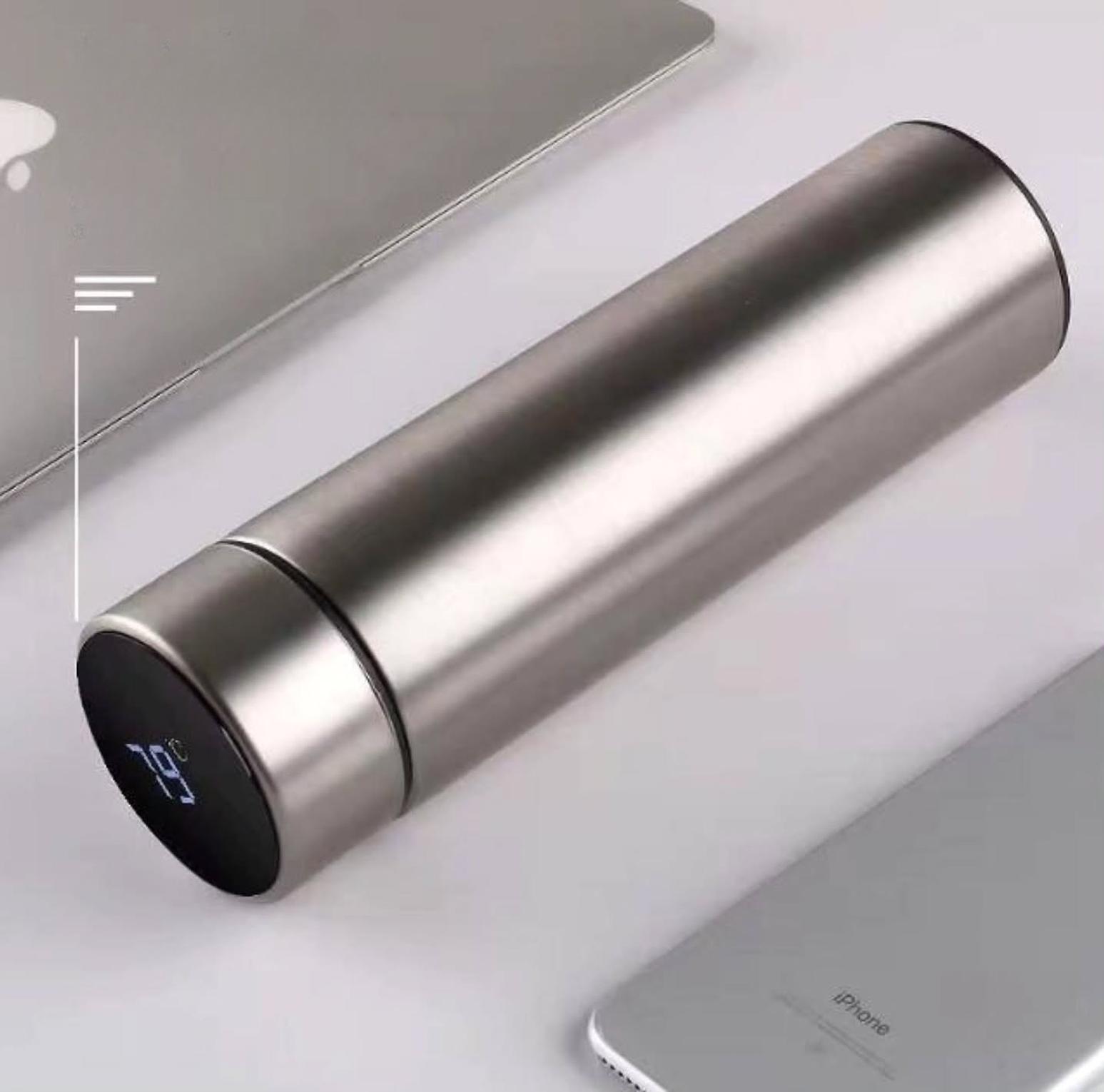 Experience smart hydration technology with this contemporary stainless steel vacuum flask, designed for optimal performance and convenience. The flask features advanced double-wall insulation, ensuring your hot beverages remain hot and your cold drinks stay refreshingly cool for hours. A key feature is the modern digital thermos touch display integrated into the lid, which provides an instant, accurate reading of the internal liquid temperature with a simple tap. This 500 ml capacity flask is perfect for daily use, whether you are commuting, working at your desk, or exercising, guaranteeing a perfect drinking experience every time. The slim, cylindrical body is easy to carry and fits most cup holders, and it is available in versatile Black and Silver color options to match your personal style.