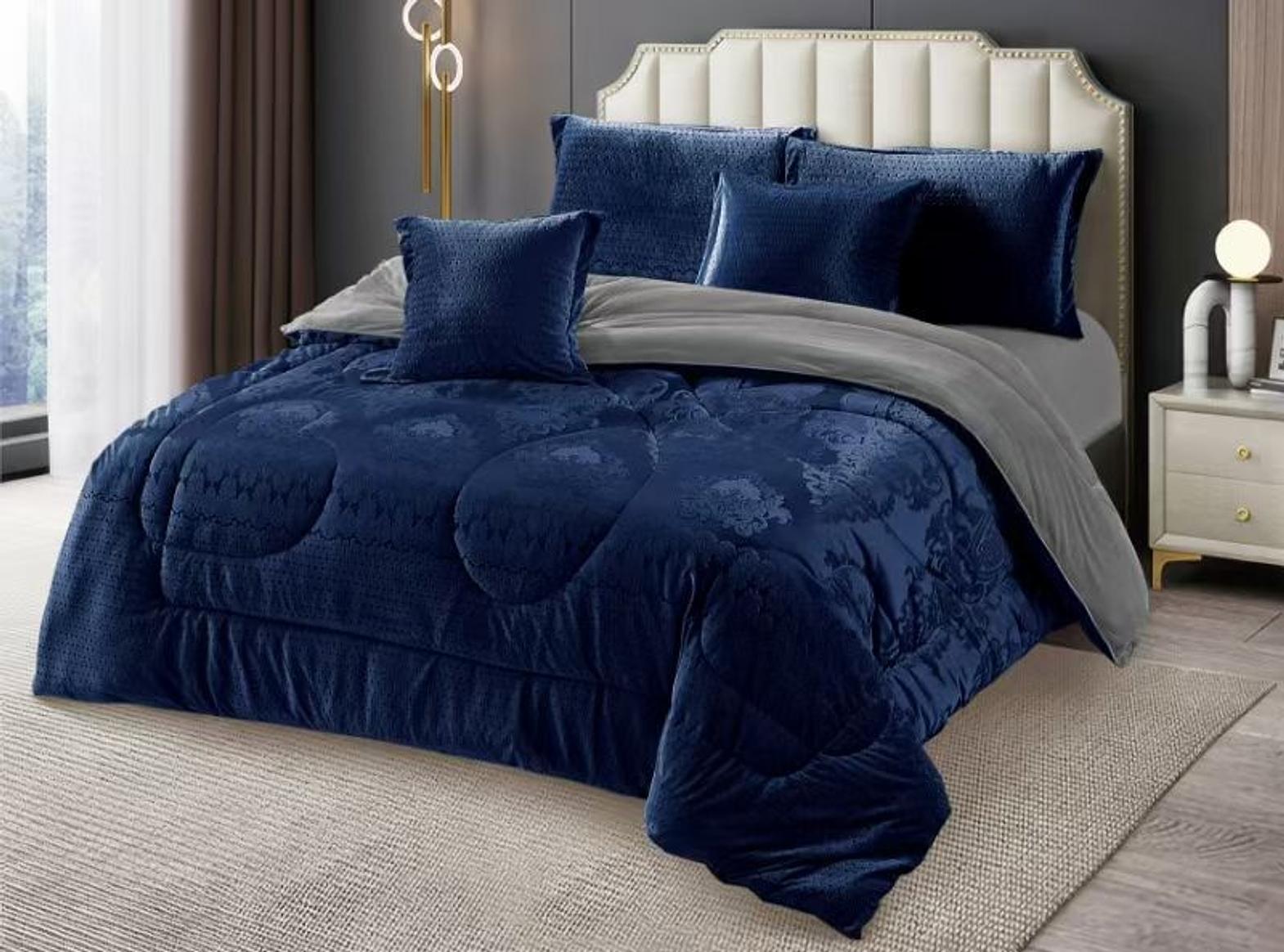 Elevate your sleep experience with the Regal Silk Jacquard Duvet Set, designed for exquisite comfort and refined style. This grand 6 by 7 feet (180cm x 210cm) bedding collection is fashioned from a premium, heavy silk fabric featuring a subtle jacquard weave for a sophisticated, dimensional look. The natural properties of silk offer an incomparable sleep surface that is breathable and smooth against the skin, helping to regulate temperature and minimize friction. The comprehensive seven-piece set ensures a perfectly coordinated bed, including one large duvet cover, one fitted or flat bed sheet, two standard pillowcases, and two decorative throw pillowcases for layering. Investing in this high-quality, durable textile is a definitive step toward achieving a more restorative and stylish nightly rest.