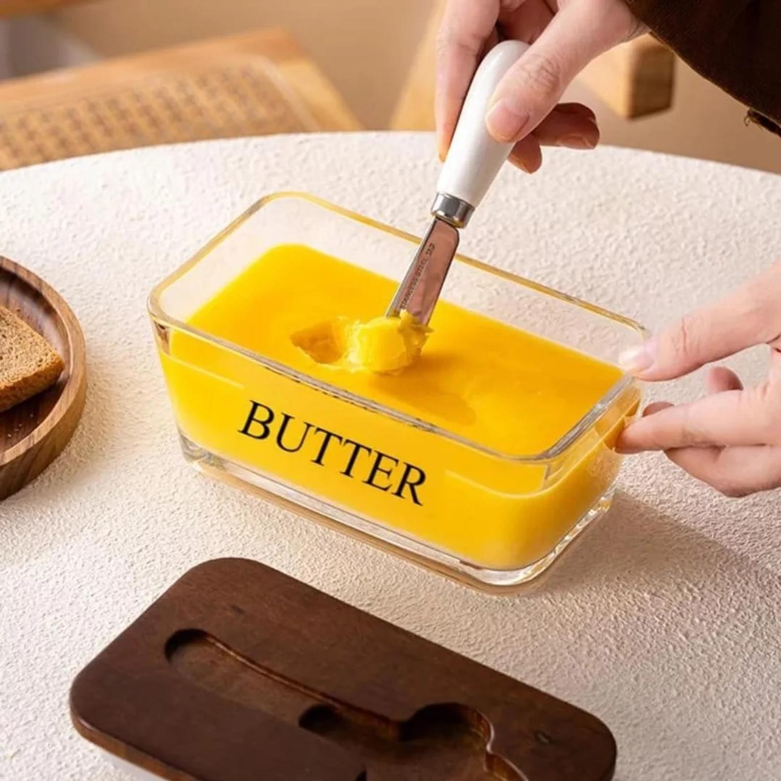 Each set comes with a beautifully crafted wooden lid, available in both natural wood and darker tones (as seen in images), which provides an effective seal to protect your butter from external elements, preserving its freshness and delicate flavor. The lid is thoughtfully designed with a groove to securely hold the included butter spreader, ensuring it's always at hand when you need it. Beyond butter, this multi-use container is also ideal for storing cheese, small fruits, or other condiments, making it a versatile addition to your kitchen storage solutions. It’s easy to clean and durable, making it a staple for daily use or special occasions.