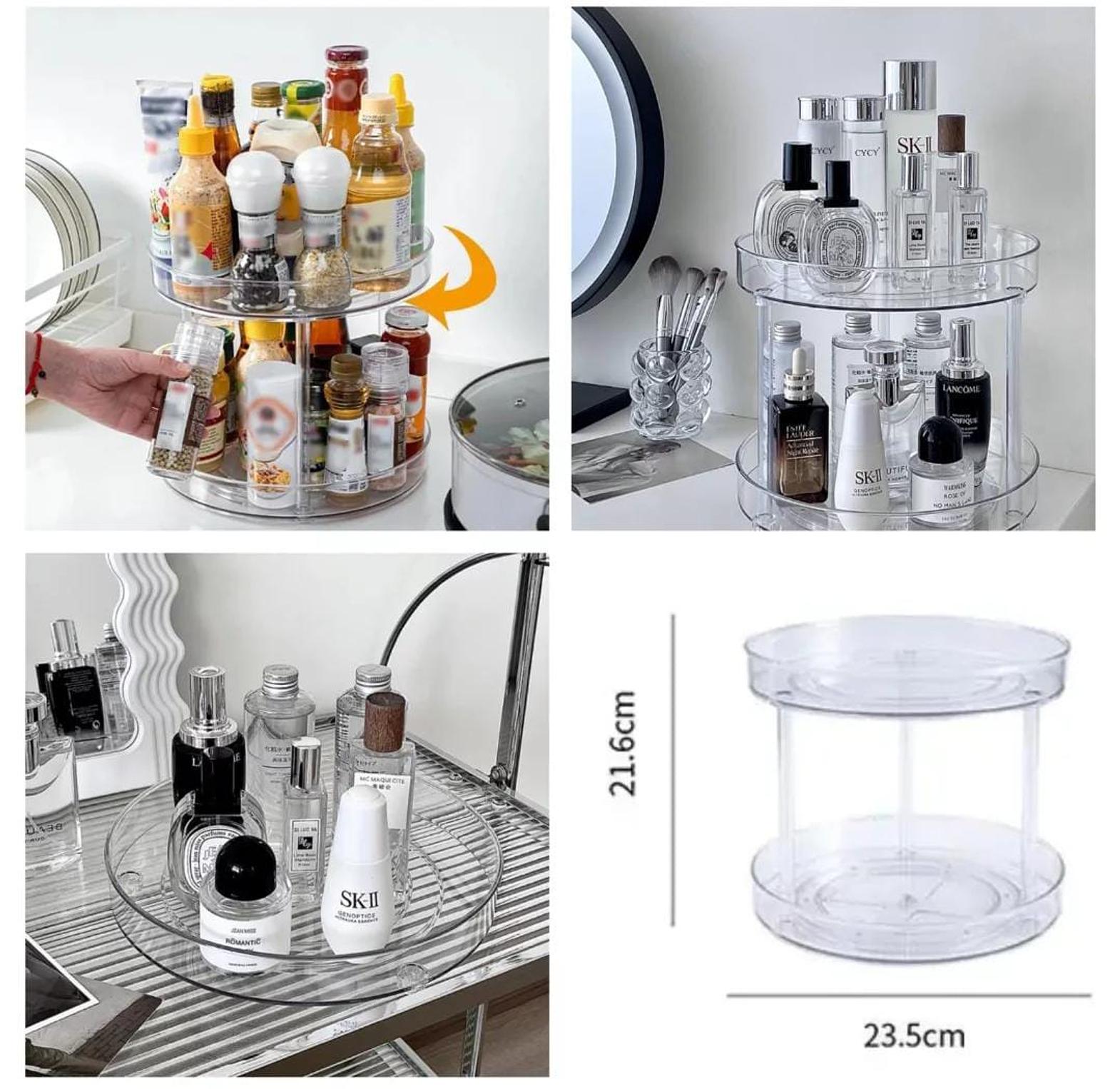 Maximize your storage efficiency with the Two Layer 360° Rotation Cabinet Turntable Organizer, designed to make organizing your kitchen, bathroom, or office a breeze. With its dual-layer design and smooth 360-degree rotation, this organizer ensures that all your essentials are within reach without the need to dig through cluttered cabinets. Ideal for spices, cleaning supplies, cosmetics, or small kitchen tools, it turns with ease, offering quick and convenient access from any angle. The sturdy construction and sleek finish make it both practical and stylish, while its compact design fits neatly into any cabinet or countertop, enhancing organization and saving space.