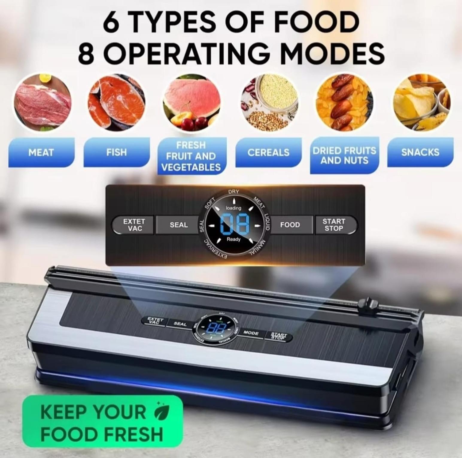 🥩 Keep Food Fresh Longer – Extends freshness up to 8x by locking out air and moisture.