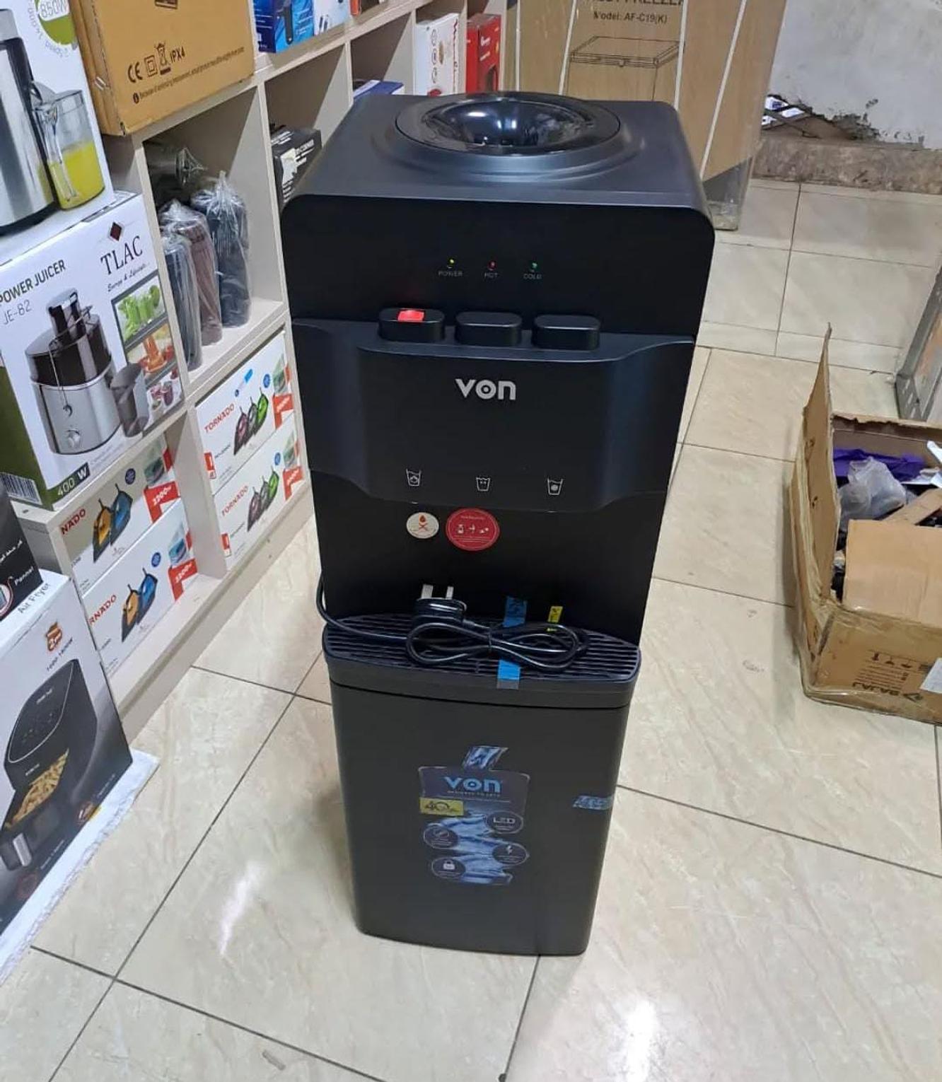 The VON 3-tap water dispenser is designed for ultimate convenience, offering three essential temperature options—hot, cold, and normal—to suit all your hydration needs. Perfect for homes, offices, or any space where easy access to water is a priority, this dispenser ensures you're always prepared for a hot cup of tea, a refreshing cold drink, or room temperature water at a moment's notice. With its sleek, modern design, it fits seamlessly into any environment, providing both function and style. The advanced technology ensures efficient temperature control, making it an essential addition to any household or workspace.
