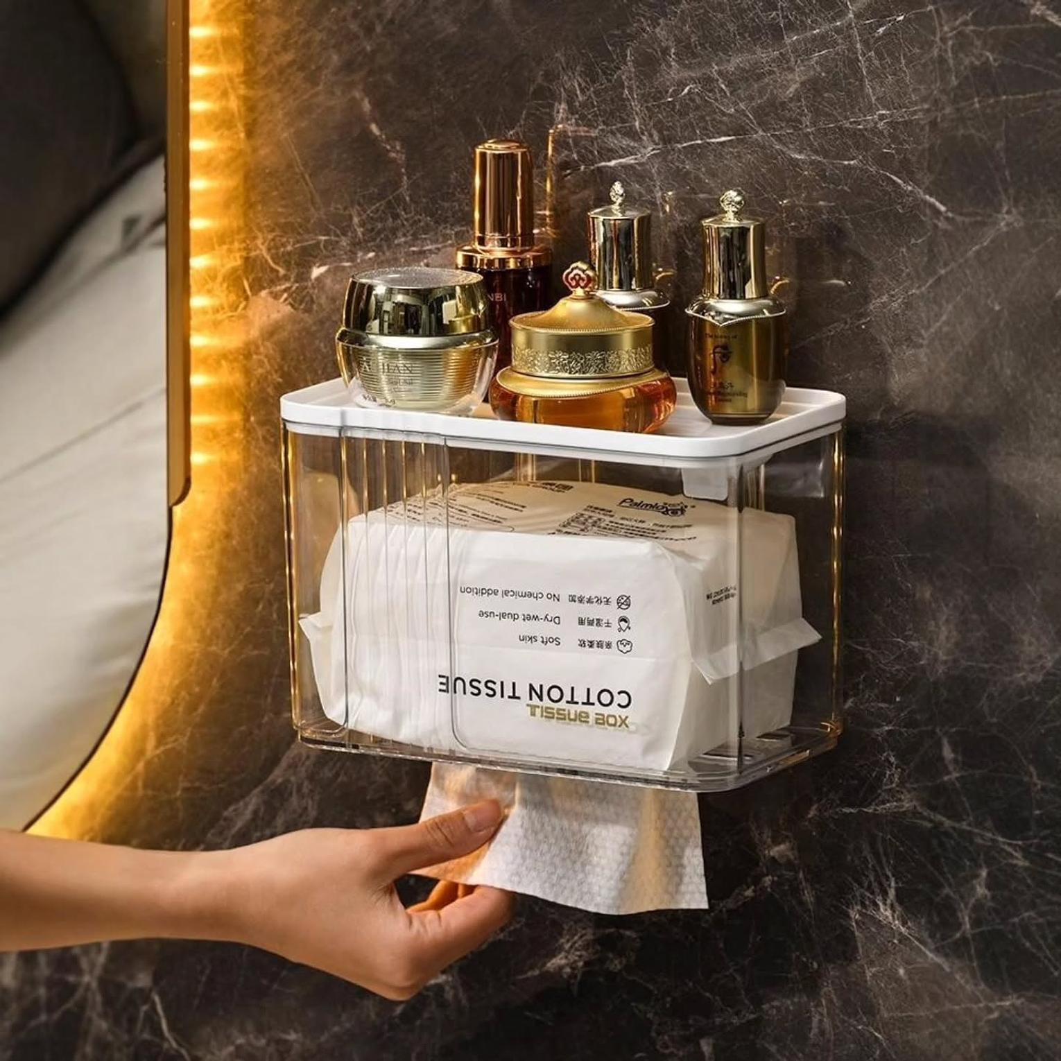 The Wall-Mounted Tissue Box is a modern and practical solution for organized, clutter-free spaces. Made with a waterproof design, it ensures tissues remain clean and dry, even in humid environments like bathrooms. Its strong, durable build comes with a convenient top storage tray for holding small essentials such as phones, wipes, or toiletries. Easy punch-free installation makes it renter-friendly, requiring no drilling while still offering a secure hold. Stylish and functional, this tissue box is perfect for bathrooms, kitchens, or living areas.