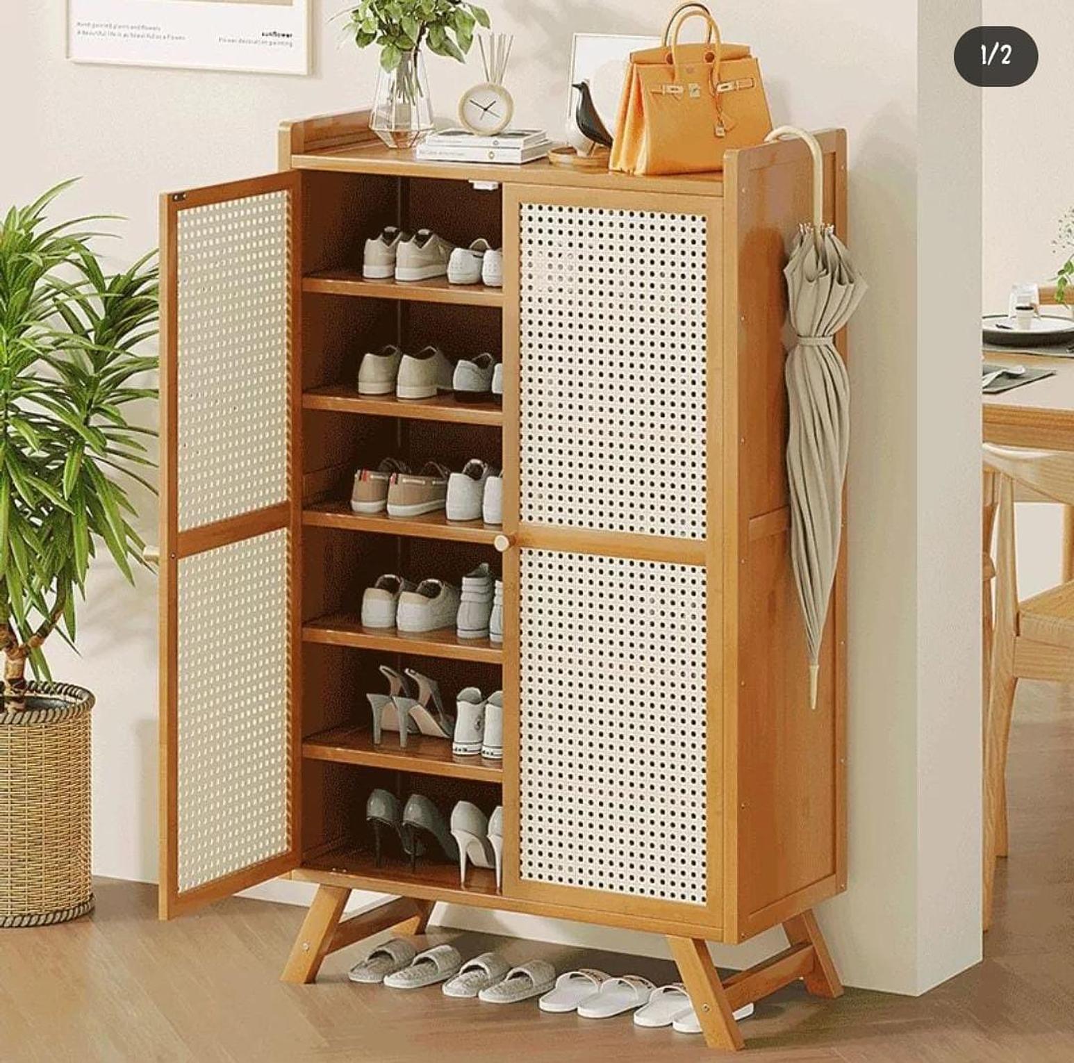 Bring both style and practicality to your entryway or closet with this wooden bamboo shoe rack/storage cabinet. Crafted from sustainable bamboo, this storage solution offers a natural, modern aesthetic that complements any home décor. With multiple tiers, it provides ample space to neatly organize shoes, boots, or accessories, while the sturdy design ensures durability for everyday use. Whether you have a small apartment or a spacious hallway, this versatile piece helps reduce clutter, keeping your shoes easily accessible and your space looking tidy. Its sleek, minimalist design is perfect for those who appreciate functionality without compromising on style, making it an ideal addition to any home.