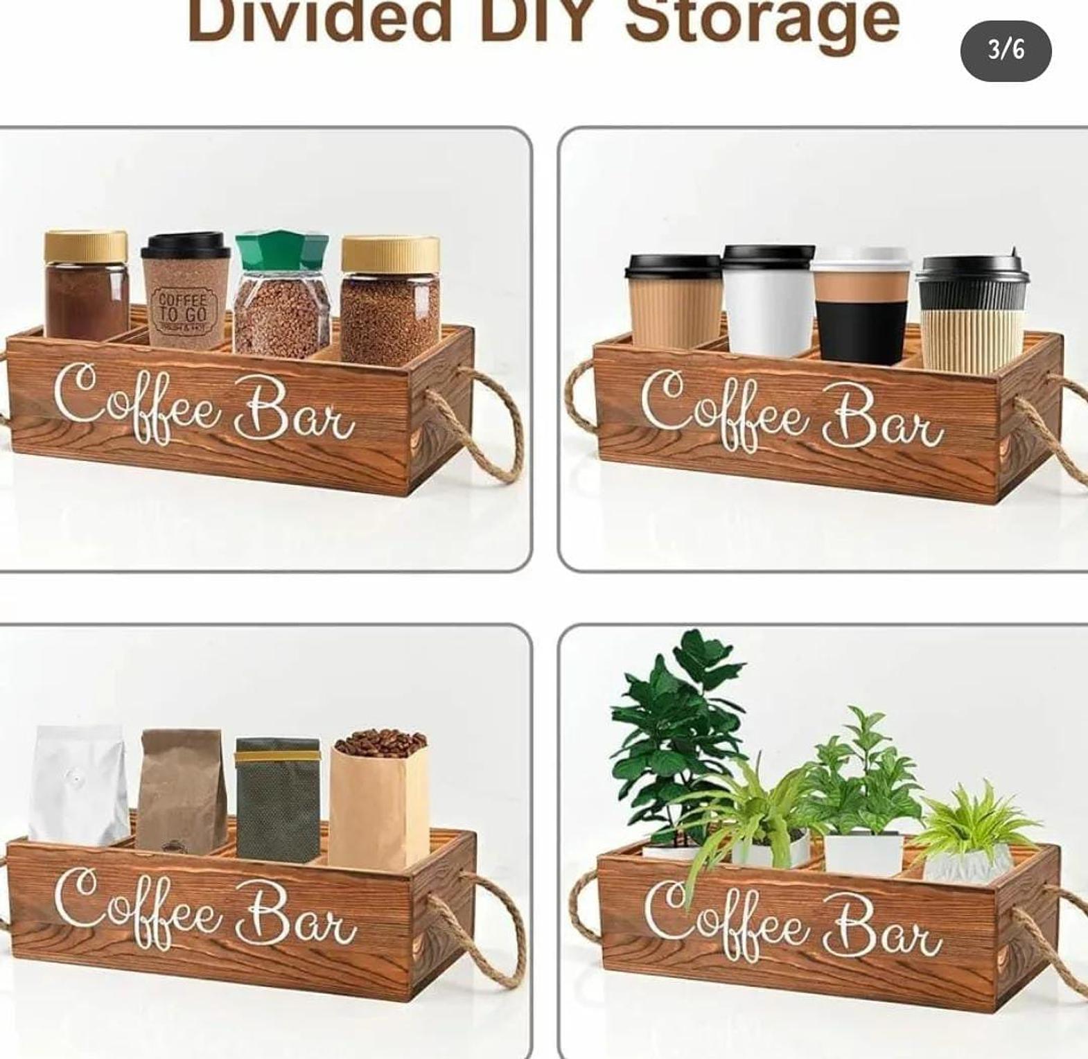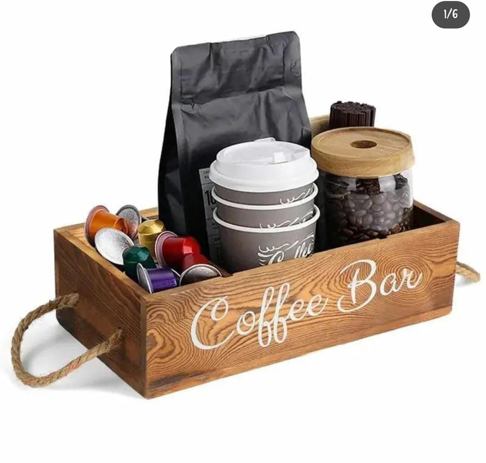 Enhance your coffee or tea station with this beautifully crafted wooden organizer, designed for both elegance and practicality. Featuring multiple compartments, it provides a dedicated space for tea bags, coffee pods, sugar packets, stirrers, and other essentials, keeping everything within easy reach. The natural wood finish adds a warm, rustic charm that blends seamlessly with any kitchen, office, or café decor. Durable and thoughtfully designed, this organizer helps maintain a clutter-free countertop while elevating your beverage-serving experience. Perfect for coffee lovers and tea enthusiasts, it brings convenience and sophistication to every sip.
