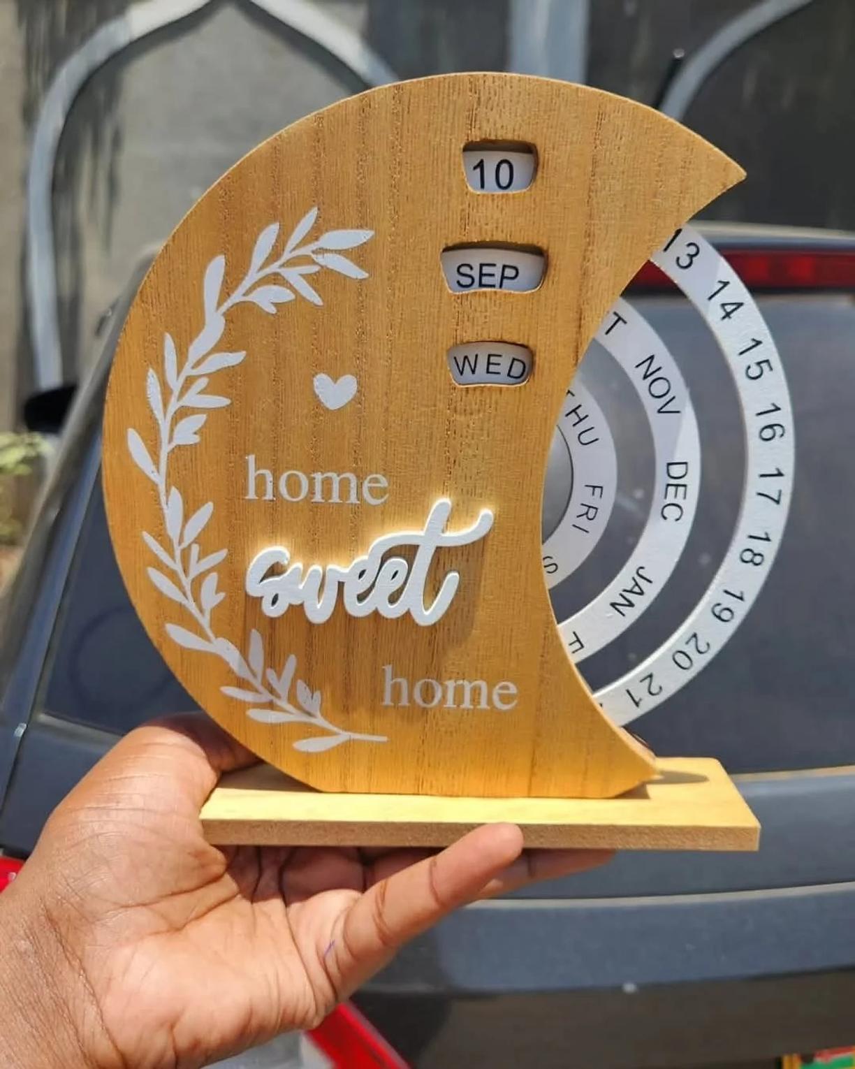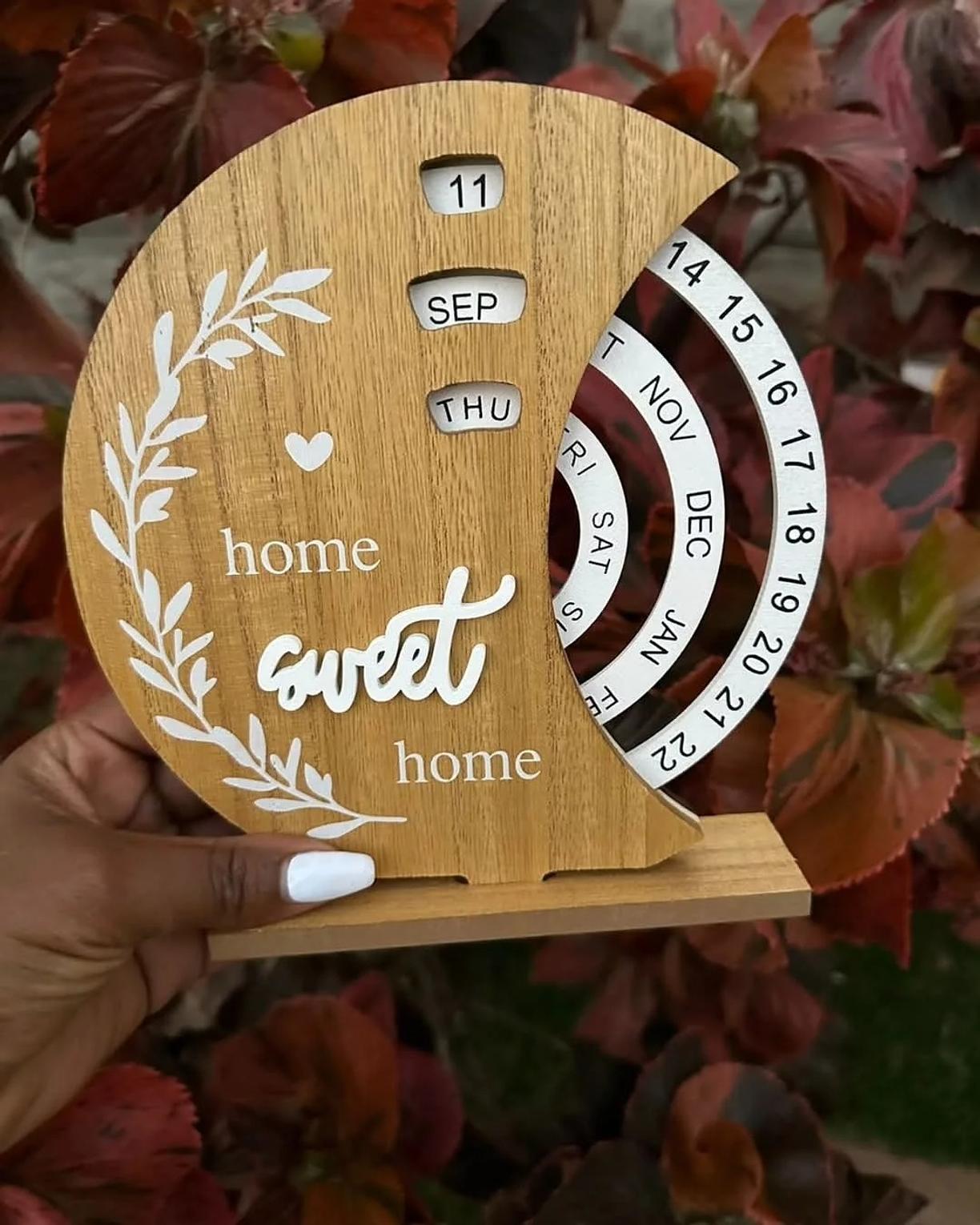 Available in a variety of charming designs, including a "welcome to our home" boat shape, a rustic bow design, and a "home sweet home" crescent, these calendars serve as beautiful home decoration pieces. Their natural wooden finish complements a wide range of interior styles, from farmhouse to contemporary. Beyond their aesthetic appeal, these office desk ornaments are a fantastic way to stay organized while adding a unique, interactive element to your daily routine. They are perfect for personal use or as a thoughtful and creative gift for friends, family, or colleagues. Enjoy the enduring beauty and functionality of this manual rotating turntable calendar.