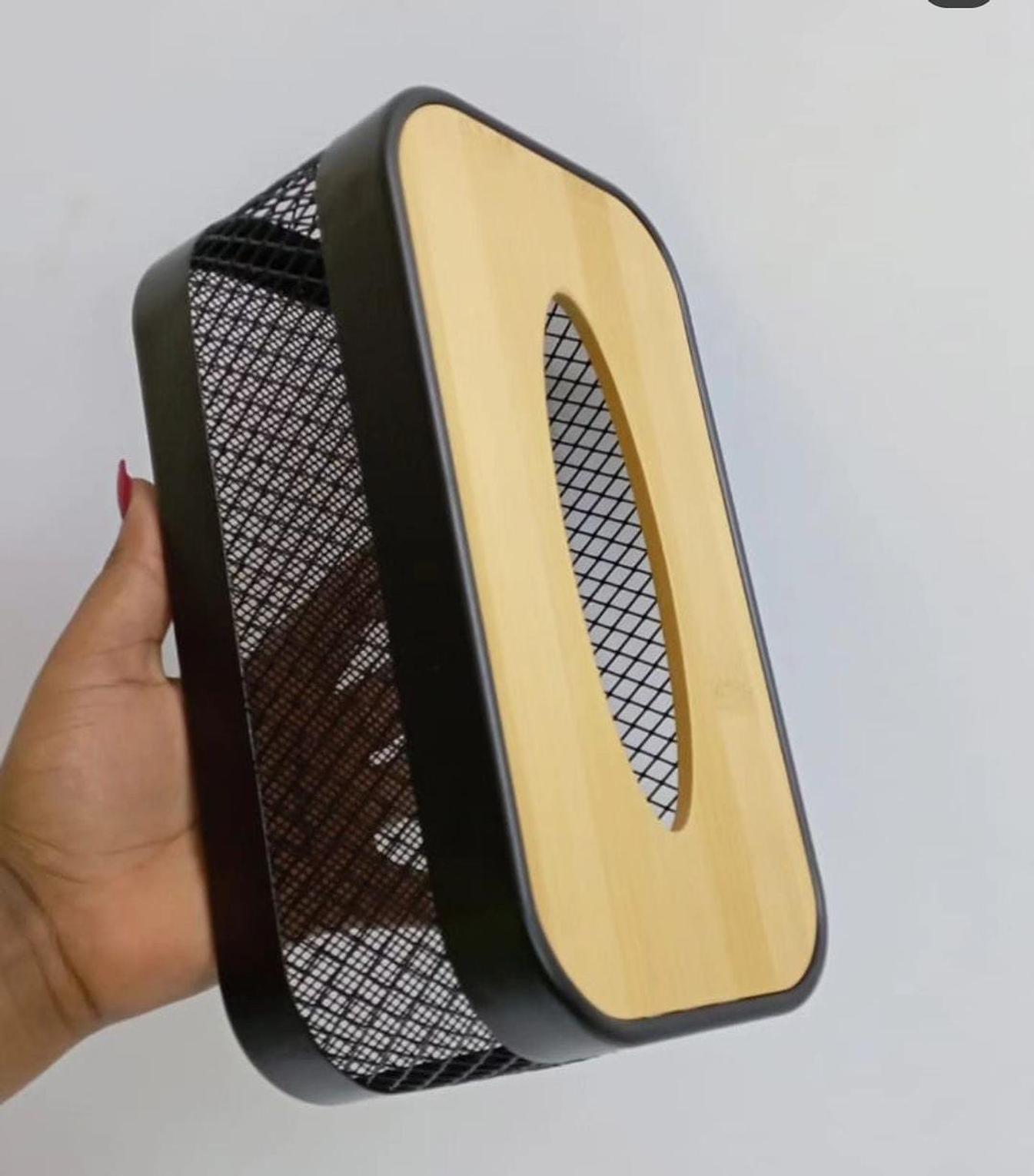 Our wooden top mesh serviette holder is a stylish and functional addition to any dining table or kitchen countertop. Featuring a sturdy wooden top, this holder provides a natural aesthetic that complements various decor styles, while the mesh sides offer visibility and easy access to your serviettes. Designed for durability and convenience, it keeps your napkins neatly organized and within reach during meals or gatherings. The lightweight yet robust construction ensures stability, making it ideal for both everyday use and special occasions. Elevate your dining experience with this charming serviette holder, which adds a touch of sophistication and tidiness to your table setting, making it a must-have accessory for any home.